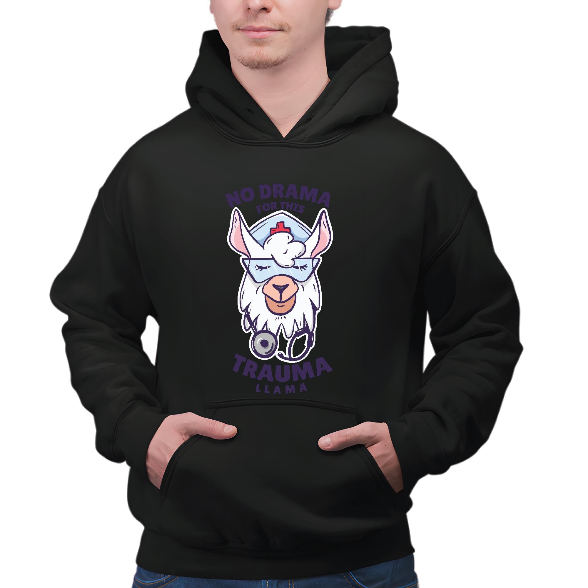 Nurse Gift No Drama For This Llama Llama Illustration for Nurses and Medical Professionals Black and Muticolor Unisex Hoodie