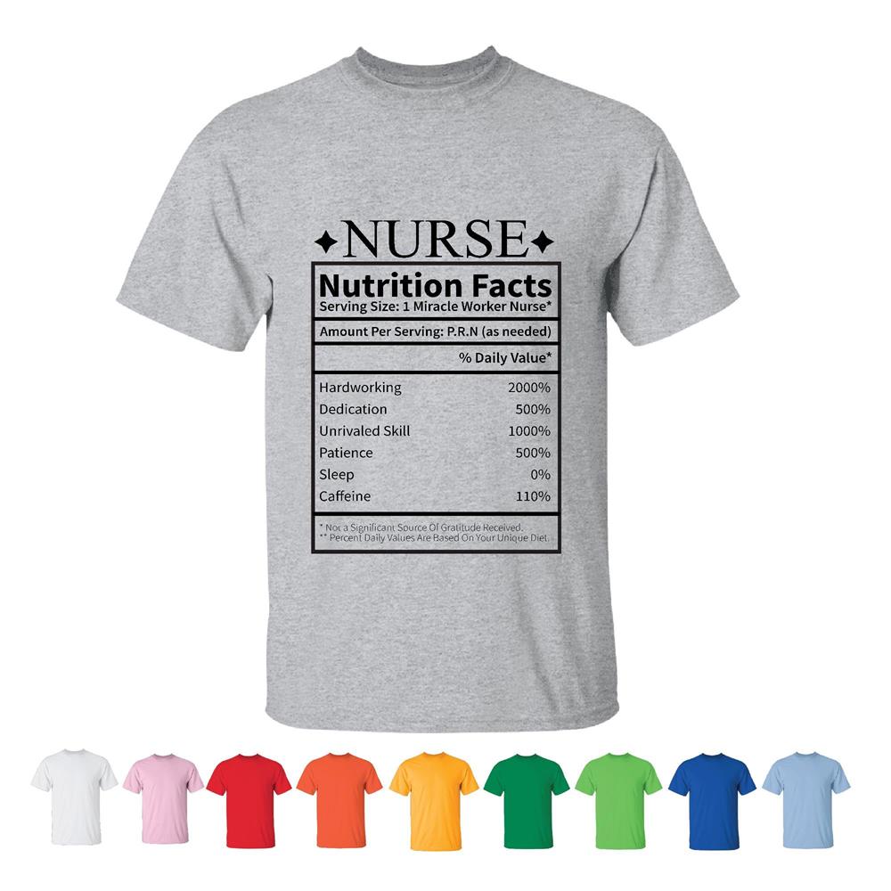 Nurse Gifts Ideas Fun Nutrition Facts Label Profession for Health Professionals Men Women White Gray T shirt