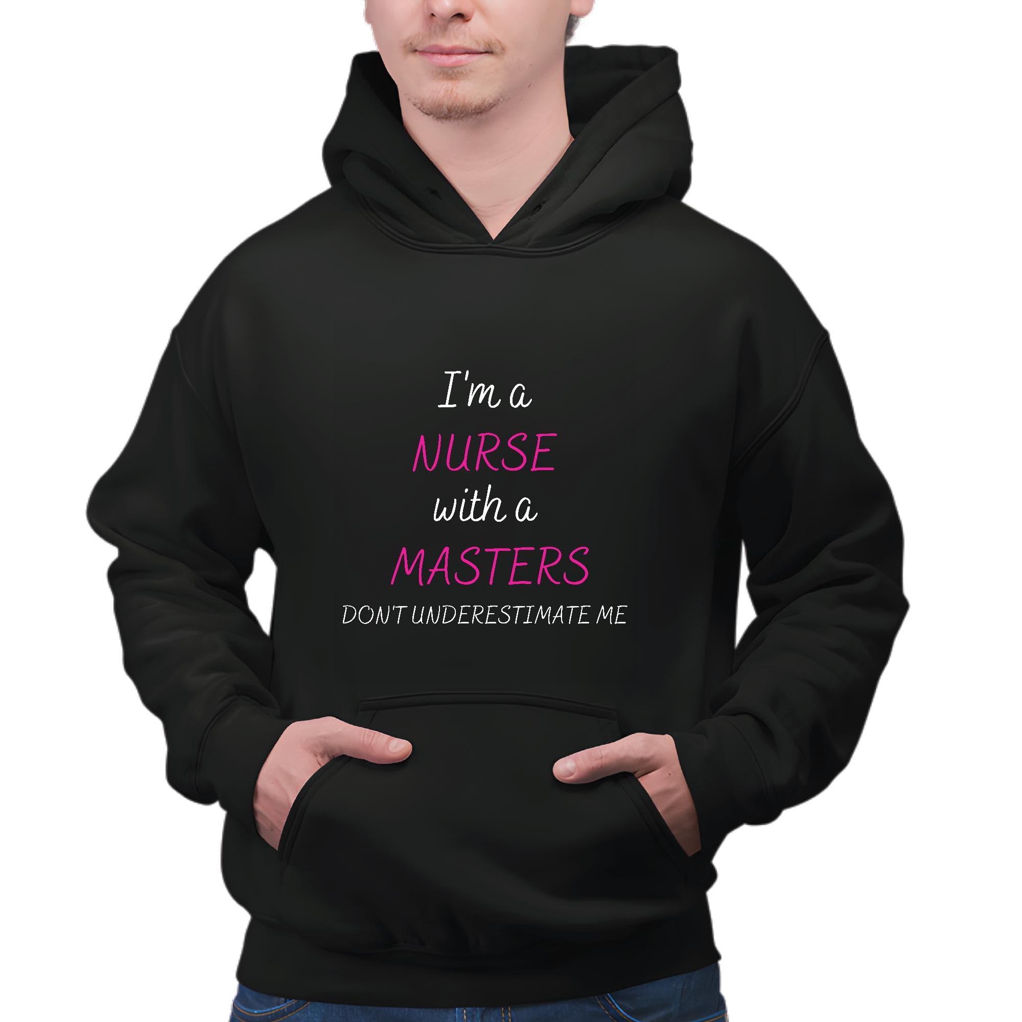 Nurse Graduate Gift Humor Dont Underestimate Me Masters Degree Black and Muticolor Unisex Hoodie