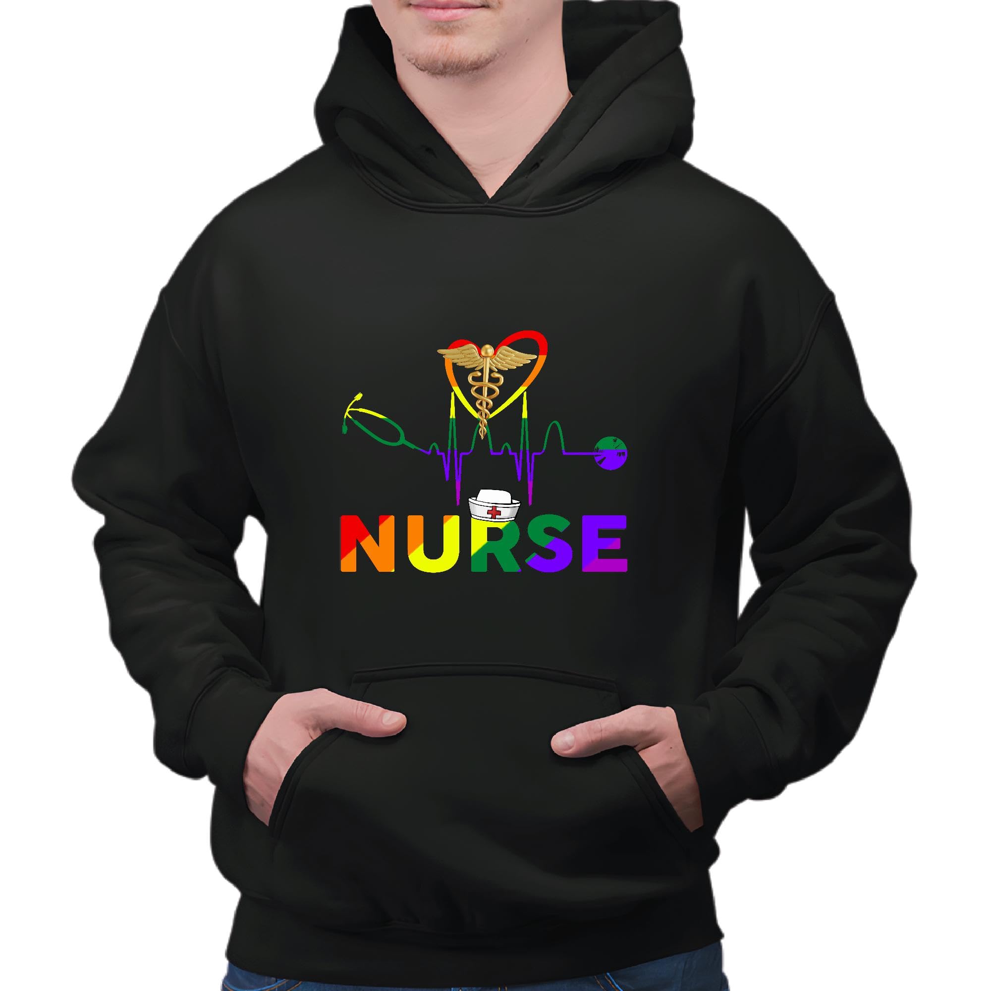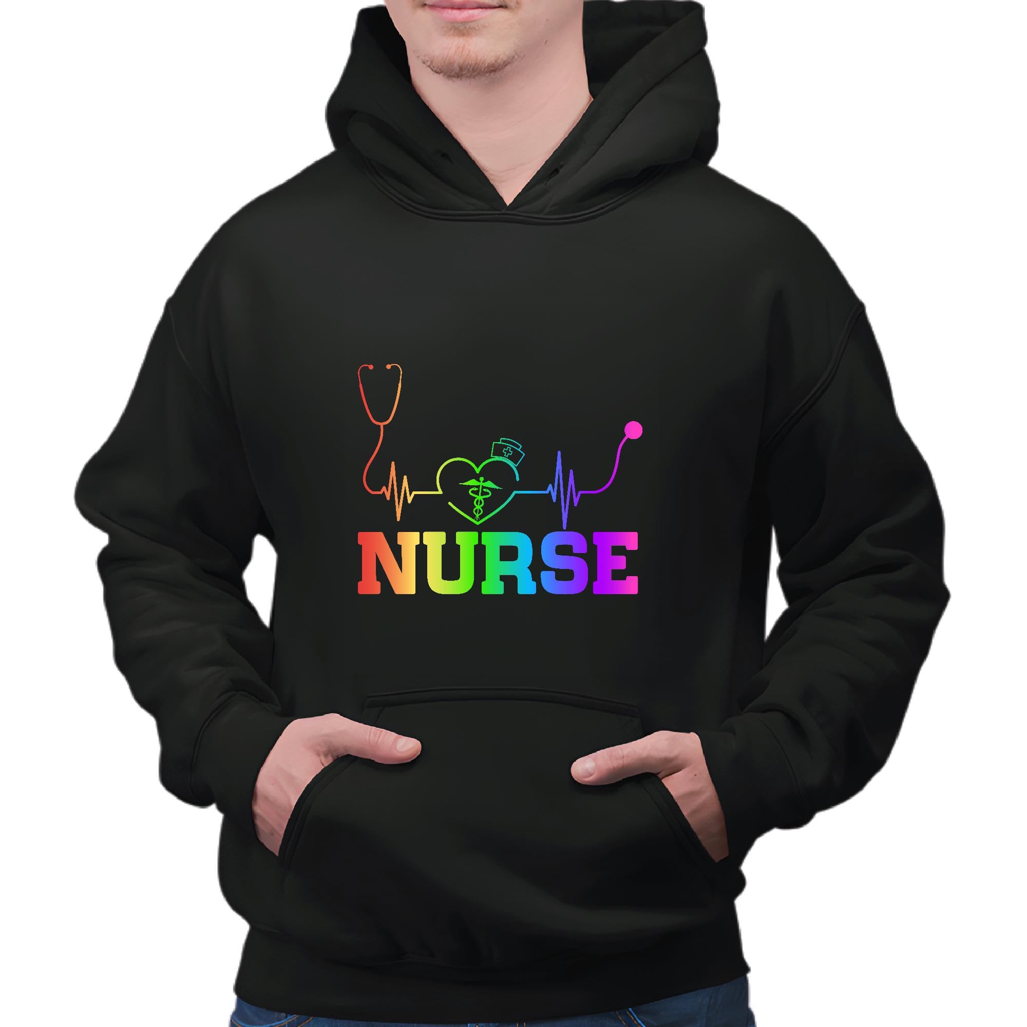 Nurse LGBTQ Gay Pride Rainbow Flag Gift idea for Registered Nursing RN Black and Muticolor Unisex Hoodie