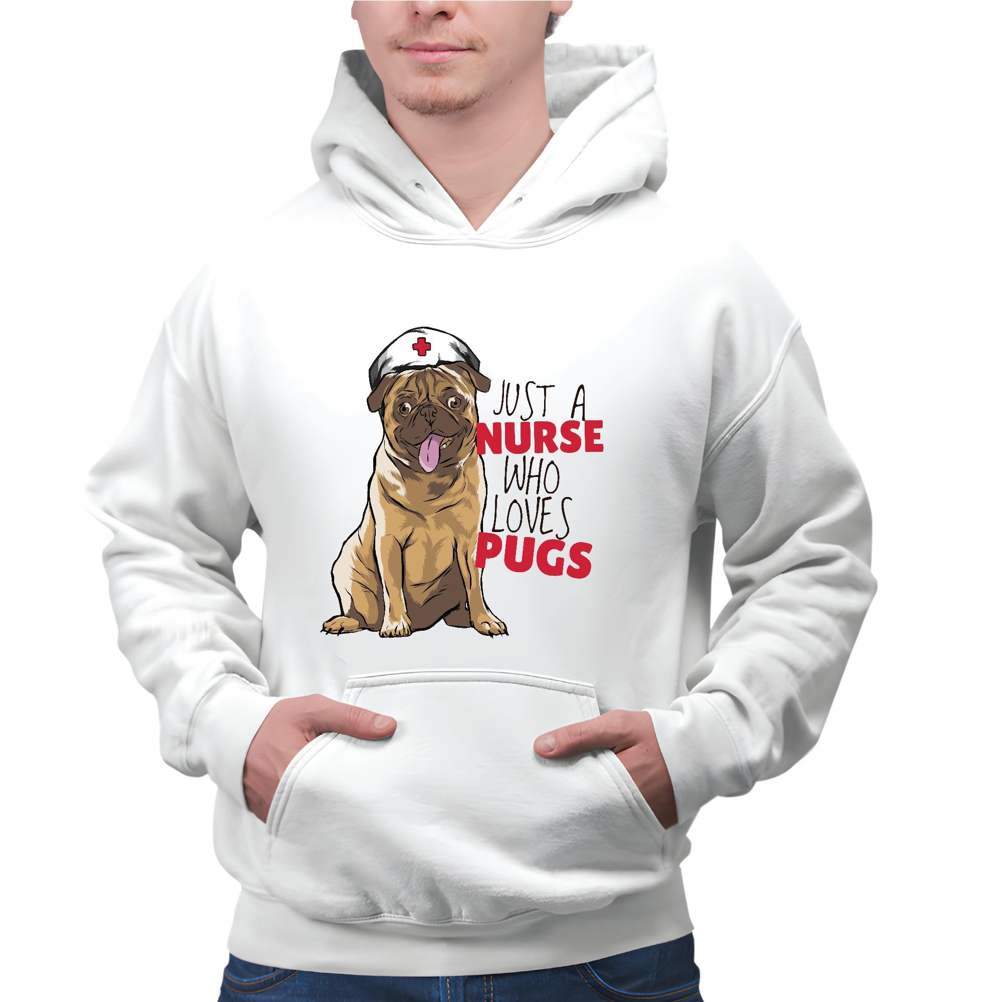 Nurse Pug Dog Gift for Nurses Cute Animal Design with Nurse Hat and Lettering Gray and Muticolor Unisex Hoodie