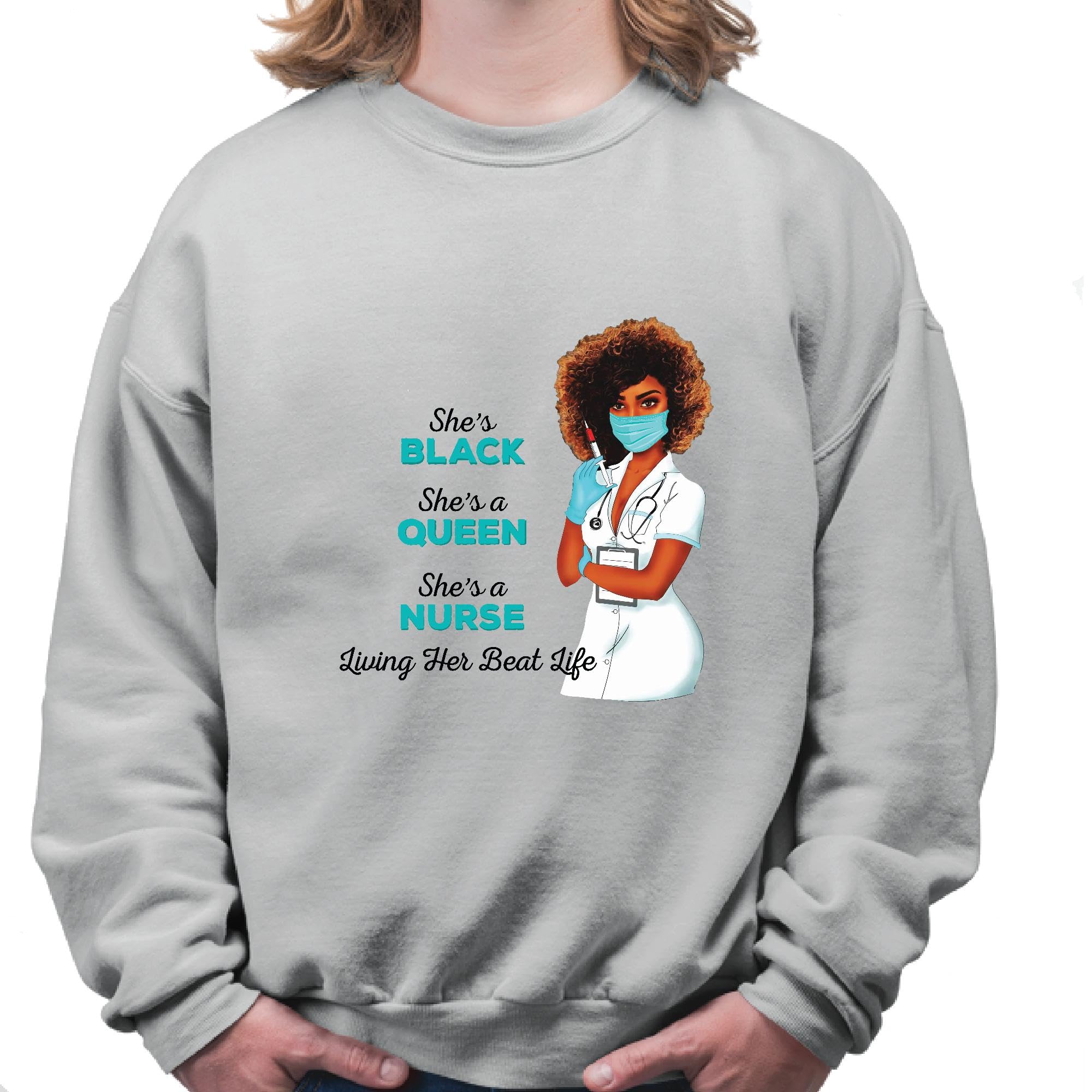 Nurse Pride Gift for Black Woman Honoring Health Professionals Grey Muticolor Unisex Sweatshirt