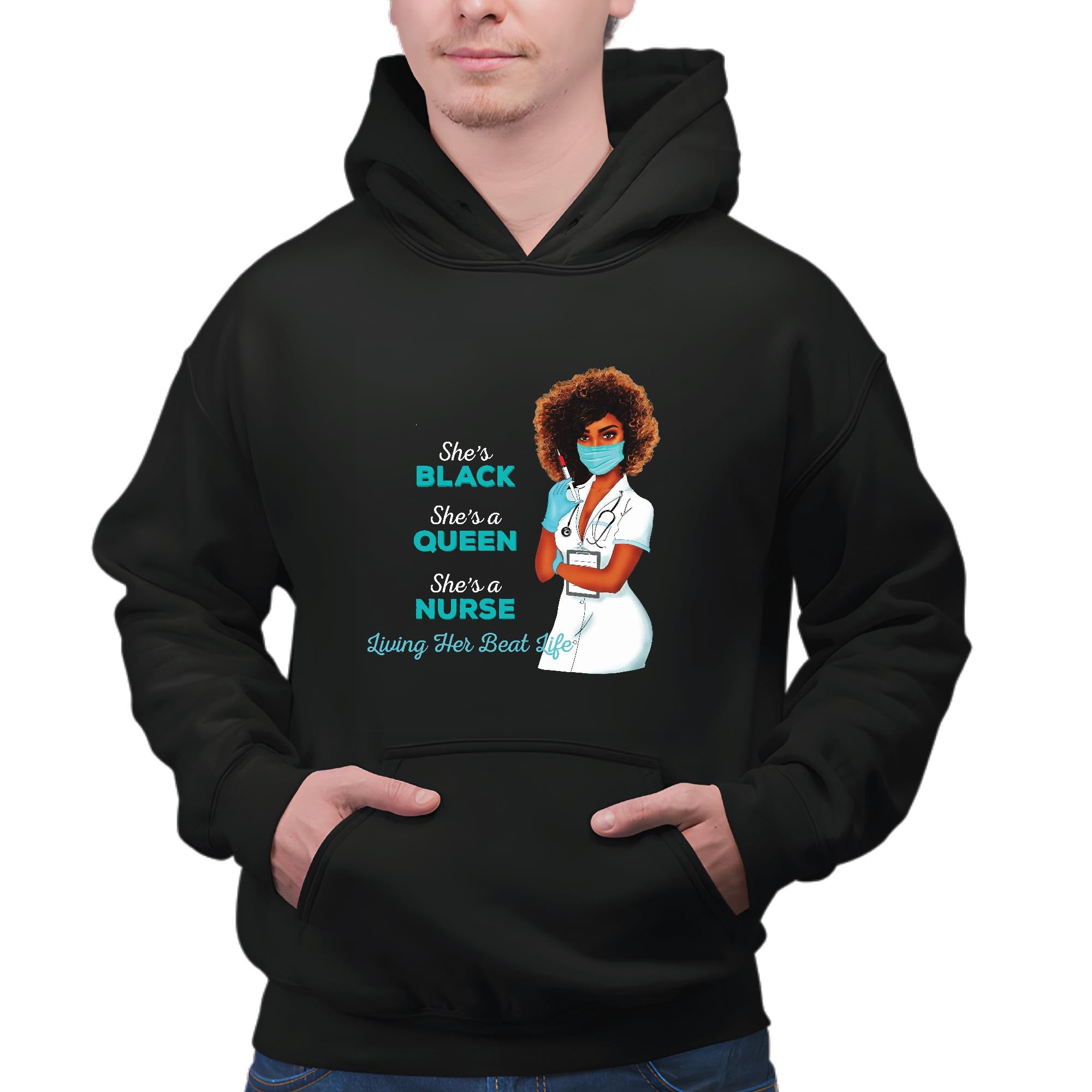 Nurse Pride Gift for Black Woman Honoring Health Professionals Black and Muticolor Unisex Hoodie