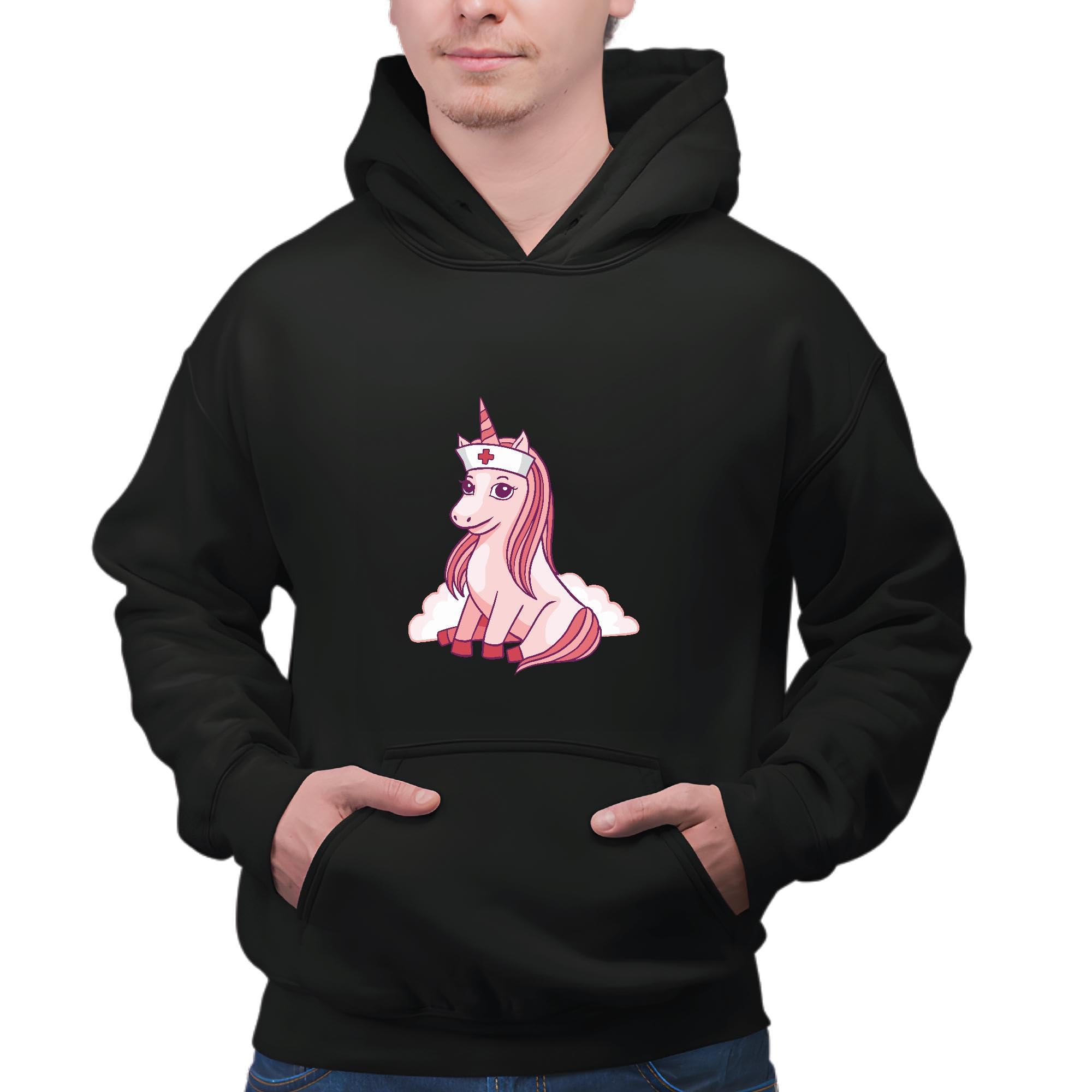 Nurse Unicorn Gift for Medical Professionals Healthcare Present Black and Muticolor Unisex Hoodie