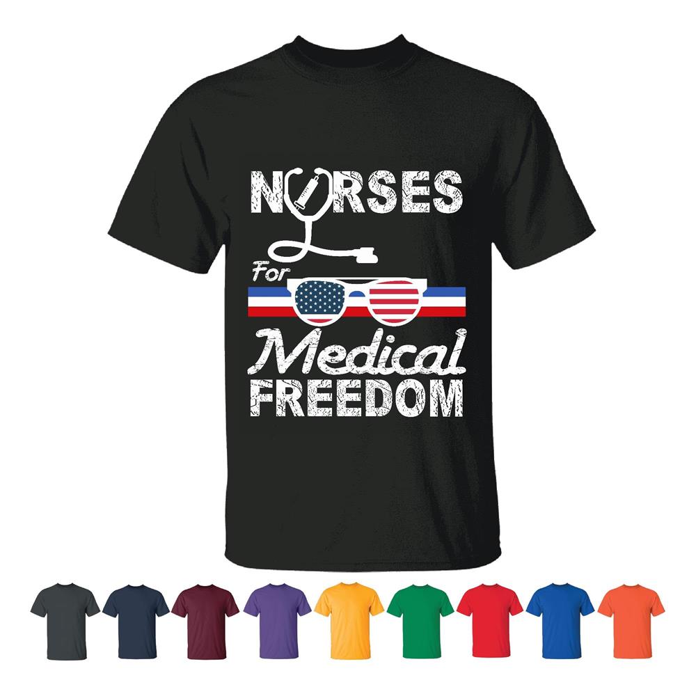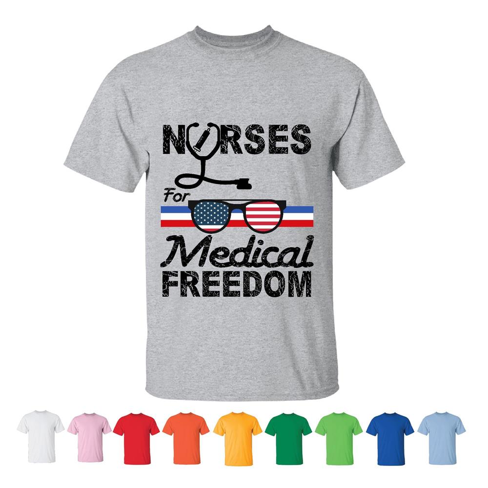 Nurses for medical freedom with sunglass flag US Men Women White Gray T shirt