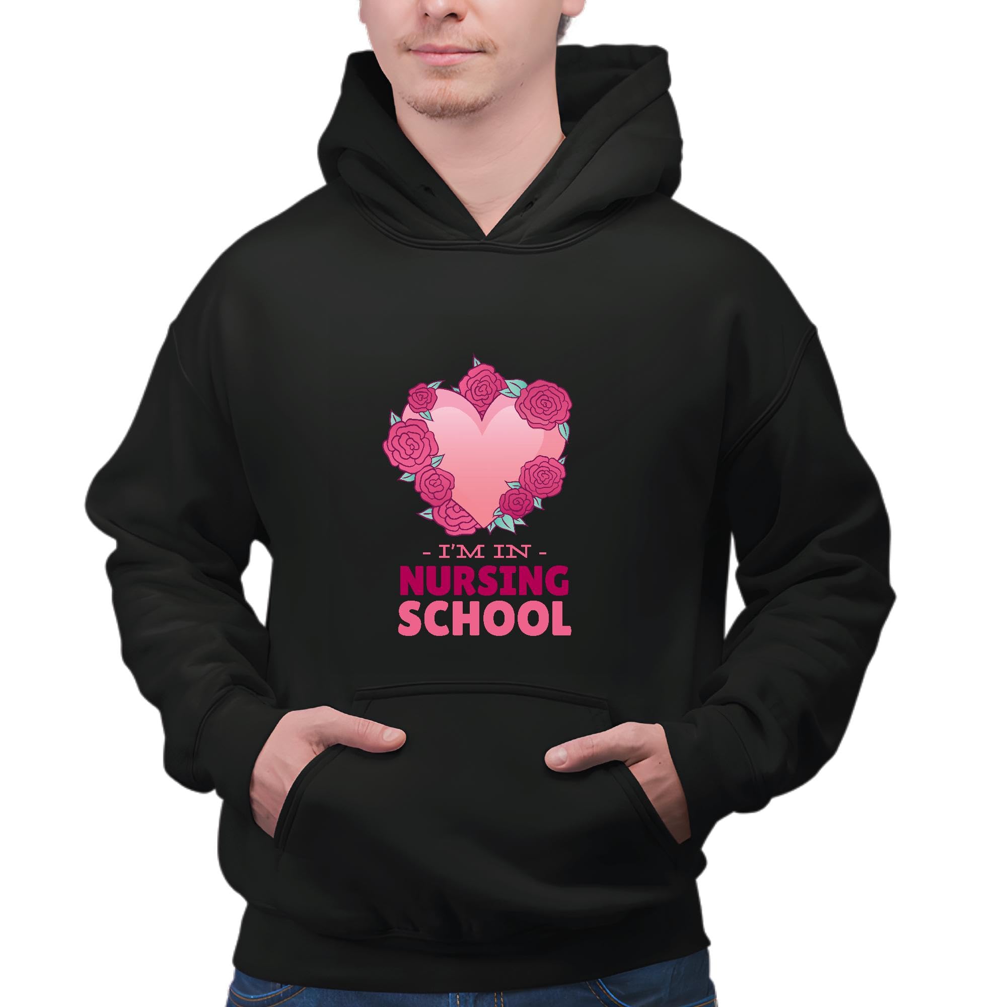 Nursing School Gift Heart with Flowers and Quote for Medicine and Healthcare Professionals Black and Muticolor Unisex Hoodie