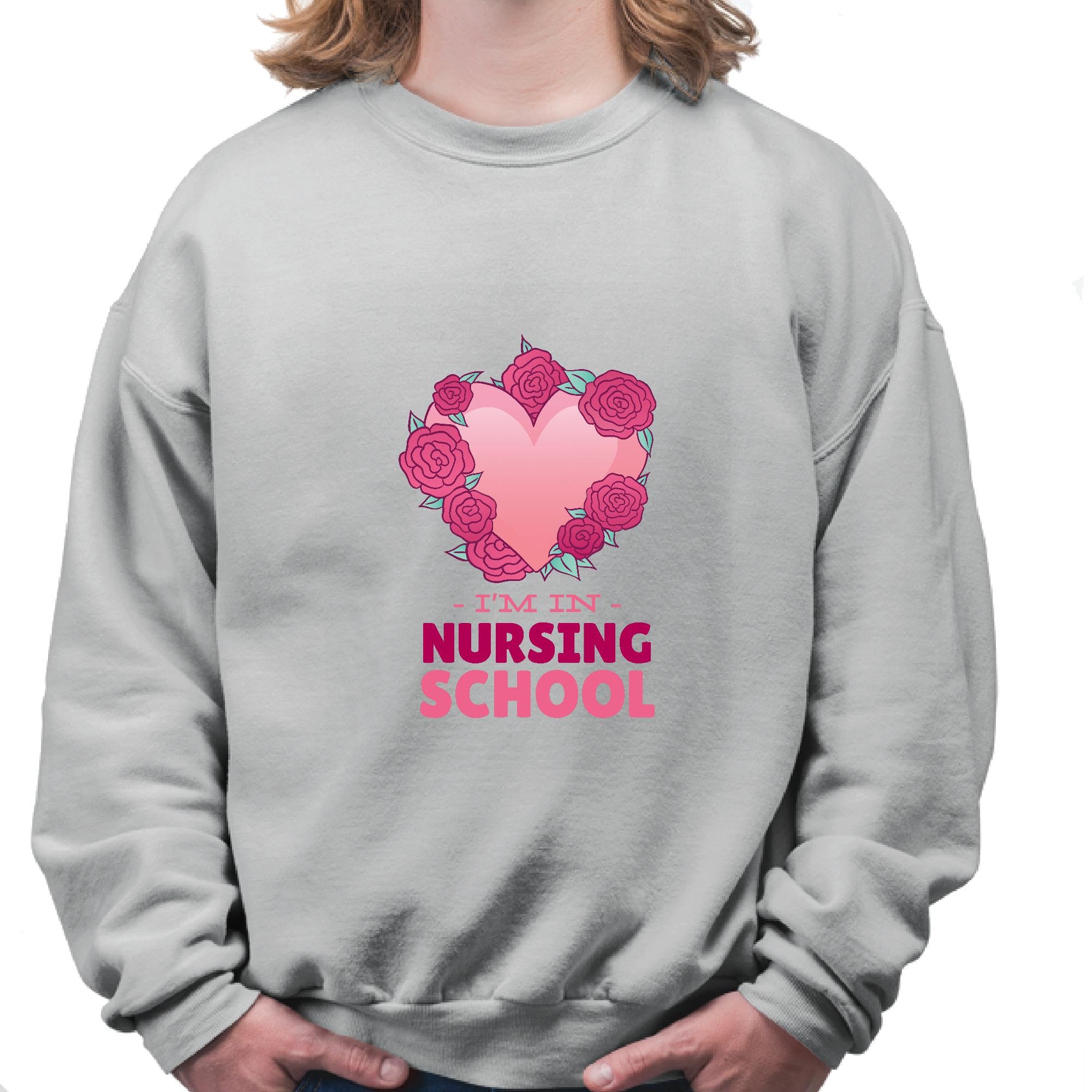 Nursing School Giftfor Medicine and Healthcare Professionals with Heart and Flowers Grey Muticolor Unisex Sweatshirt