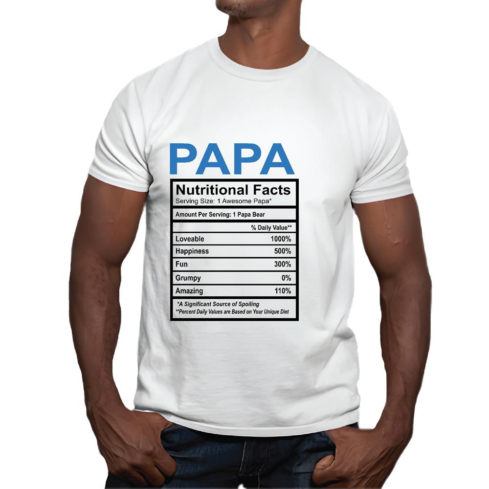 Nutrition Facts Gift for Grandpa Daddy Papa Food Label Men Women White Gray Multicolor T shirt