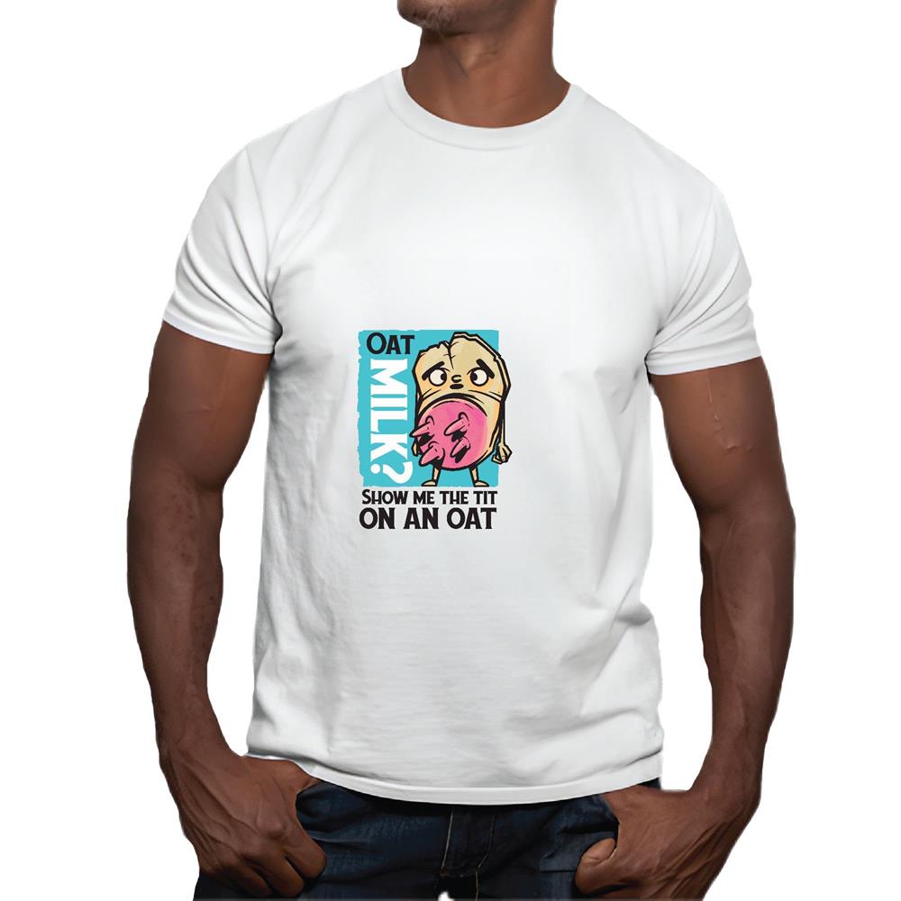 Oat Milk Gift for Kids Cartoon Oat with Udder Funny Quote for Dairy Free Dieters Men Women White Gray Multicolor T shirt