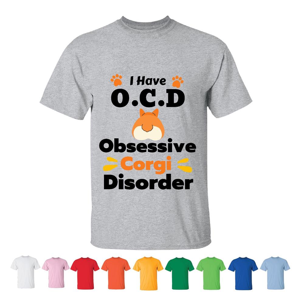 OCD Obsessive Corgi Disorder Humor Cute Loyal Pet Dog Lovers Animal Lovers Cordi Addict Idea Men Women White Gray T shirt