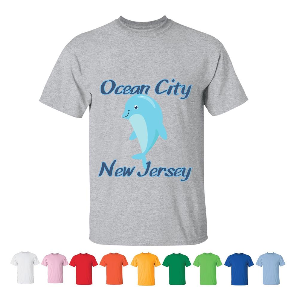 Ocean City New Jersey cute Dolphin sea animals lover Men Women White Gray T shirt