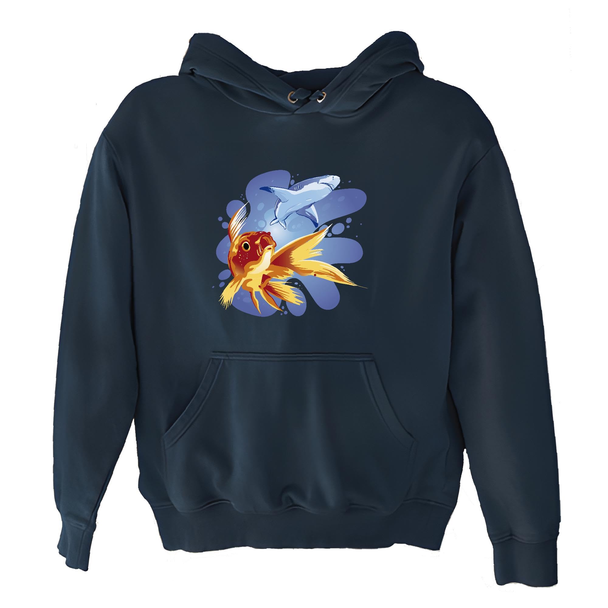 Ocean Animal Gift for Kids Goldfish and Shark Design Navy and Muticolor Unisex Hoodie