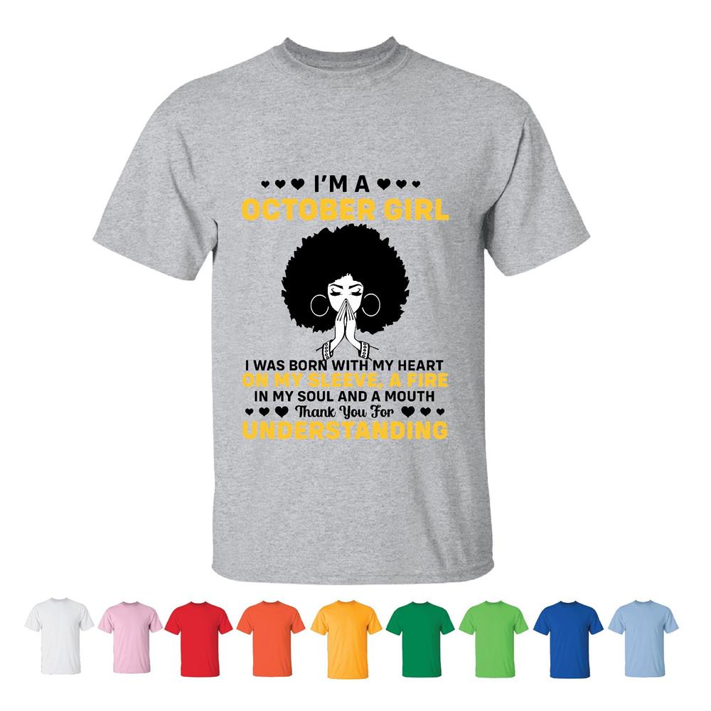 October girl my heart on my sleeve a fire Nurse Queen Men Women White Gray T shirt