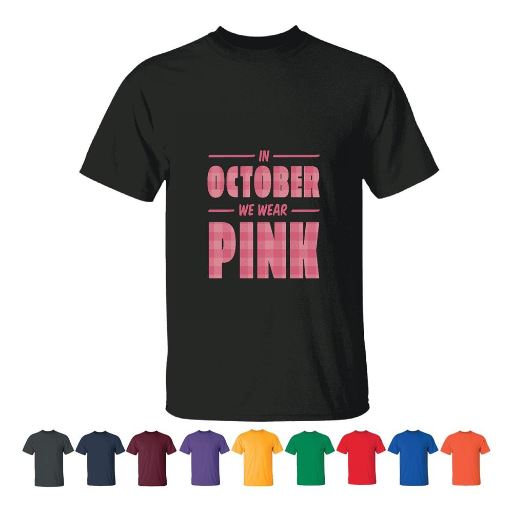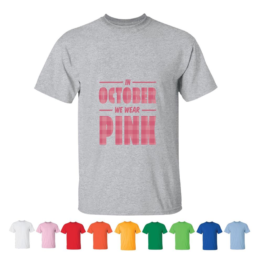 October Pink Plaid Gift Ideas for Women Inspirational Quotes Men Women White Gray T shirt