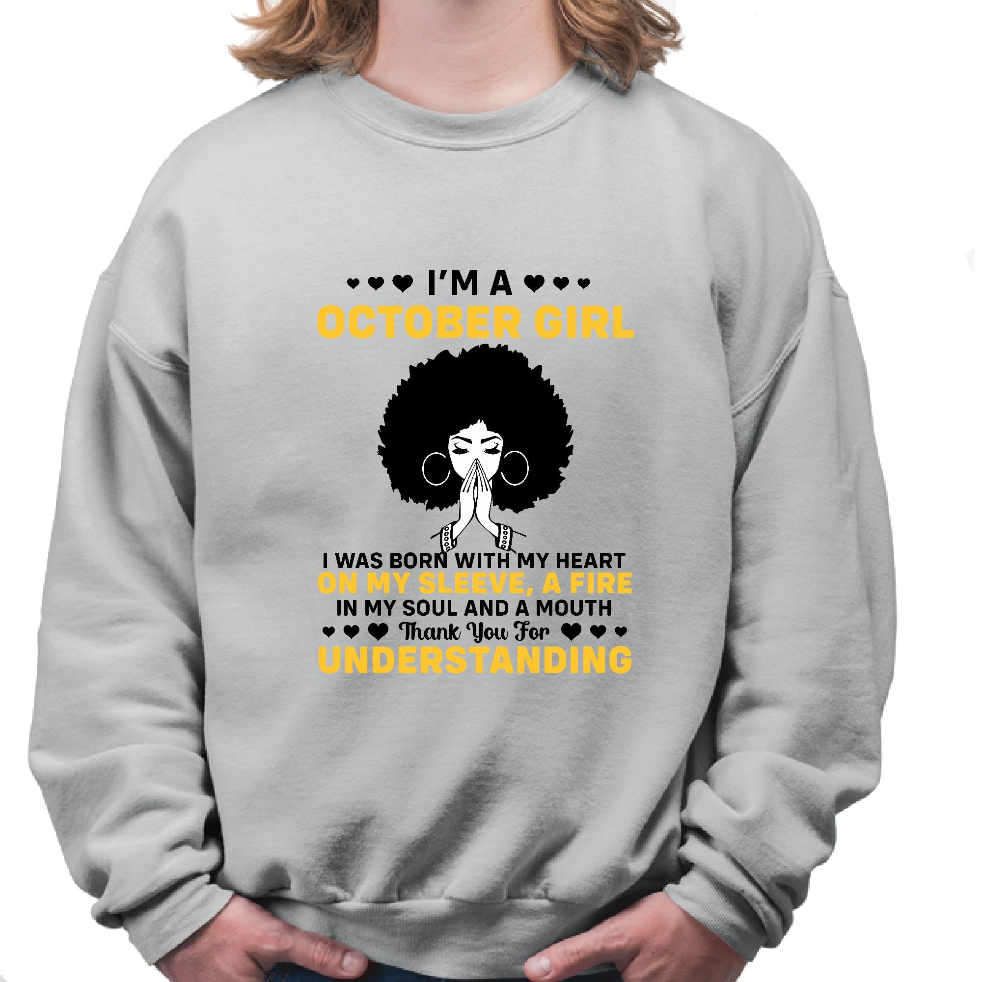 October girl my heart on my sleeve a fire Nurse Queen Grey Muticolor Unisex Sweatshirt