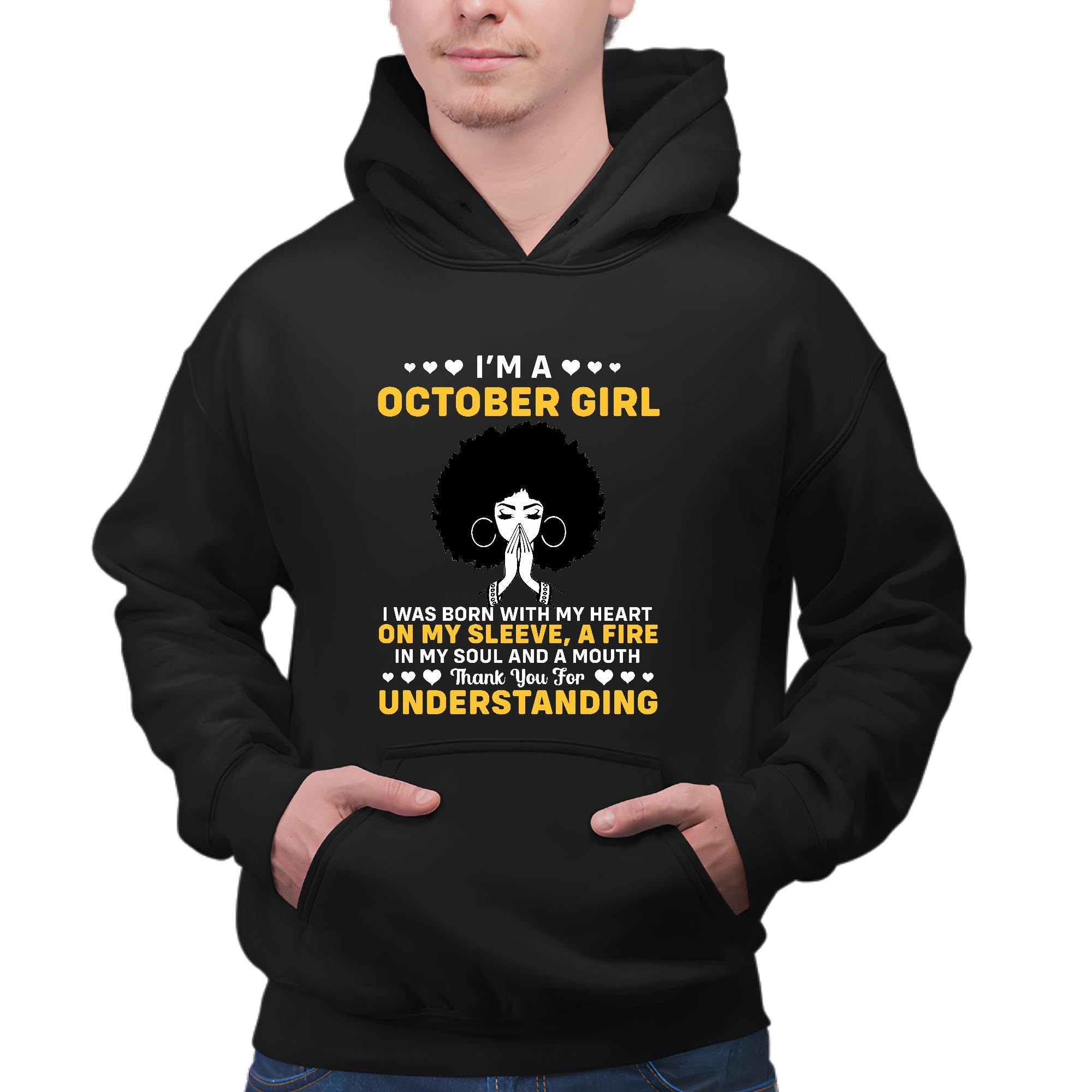 October girl my heart on my sleeve a fire Nurse Queen Black and Muticolor Unisex Hoodie