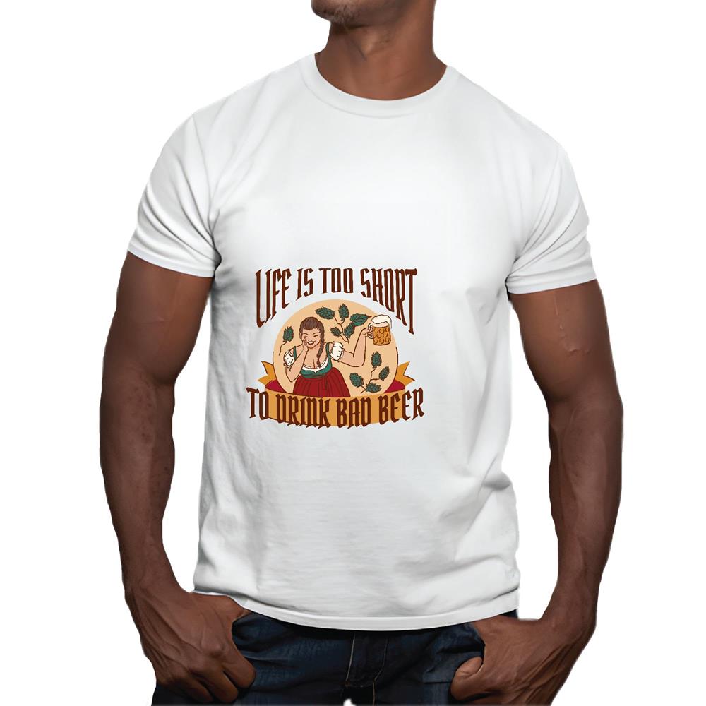 Oktoberfest Gift Idea Life Too Short to Drink Bad Beer for Beer Lovers Men Women White Gray Multicolor T shirt