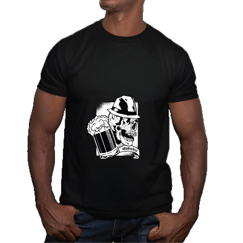 Oktoberfest Gift Beer with Detailed Skull Wearing Tyrolean Hat for Beer Lovers Men Women Black Multicolor T shirt