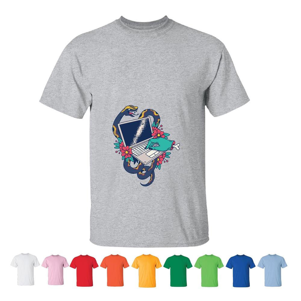 Old School Style Tattoo Design Gift for Laptop Lovers No Trademarks Men Women White Gray T shirt