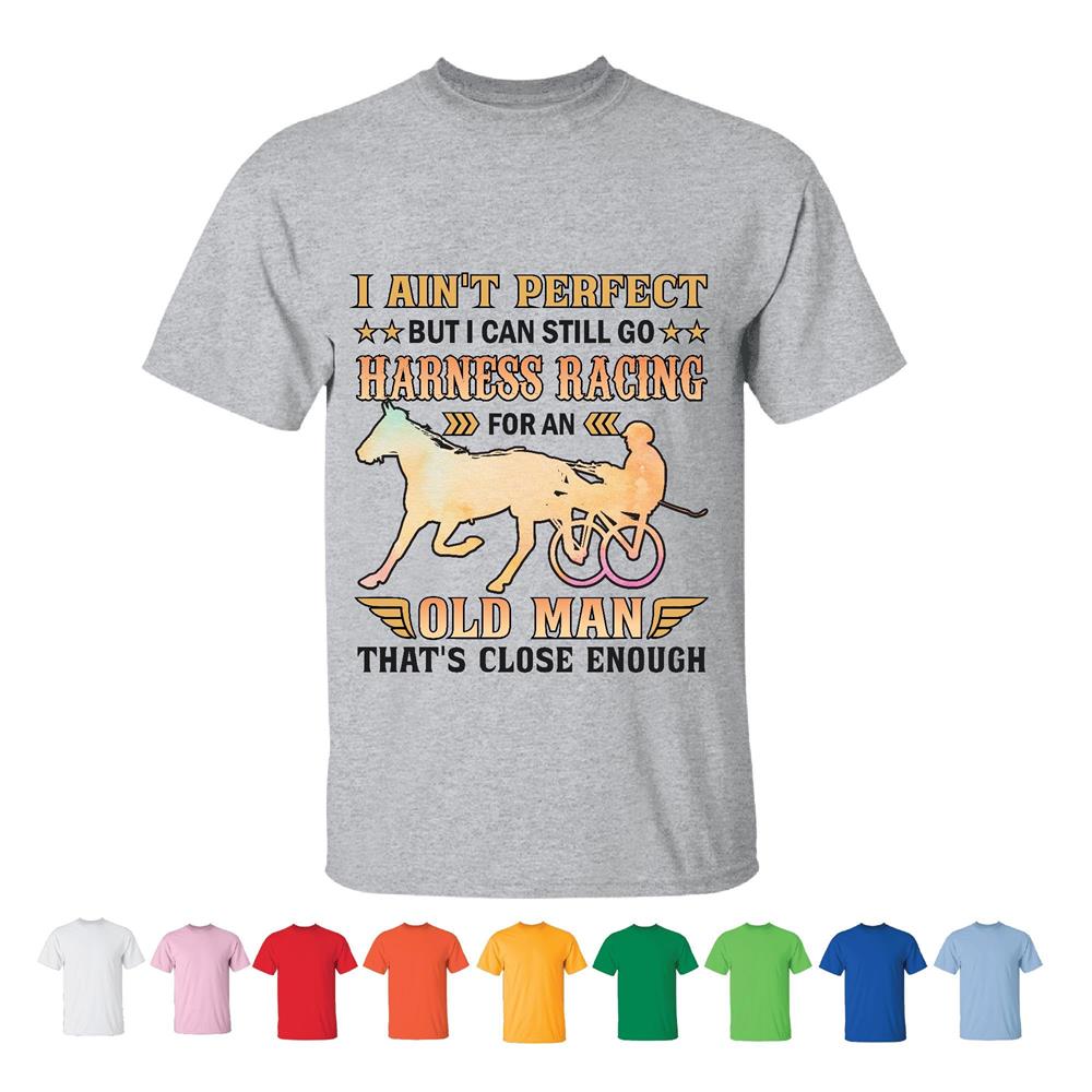 Old Man Harness Racing Shirt ideal for Proud Fathers and Grandpas Horse Racer Fans Men Women White Gray Multicolor T shirt