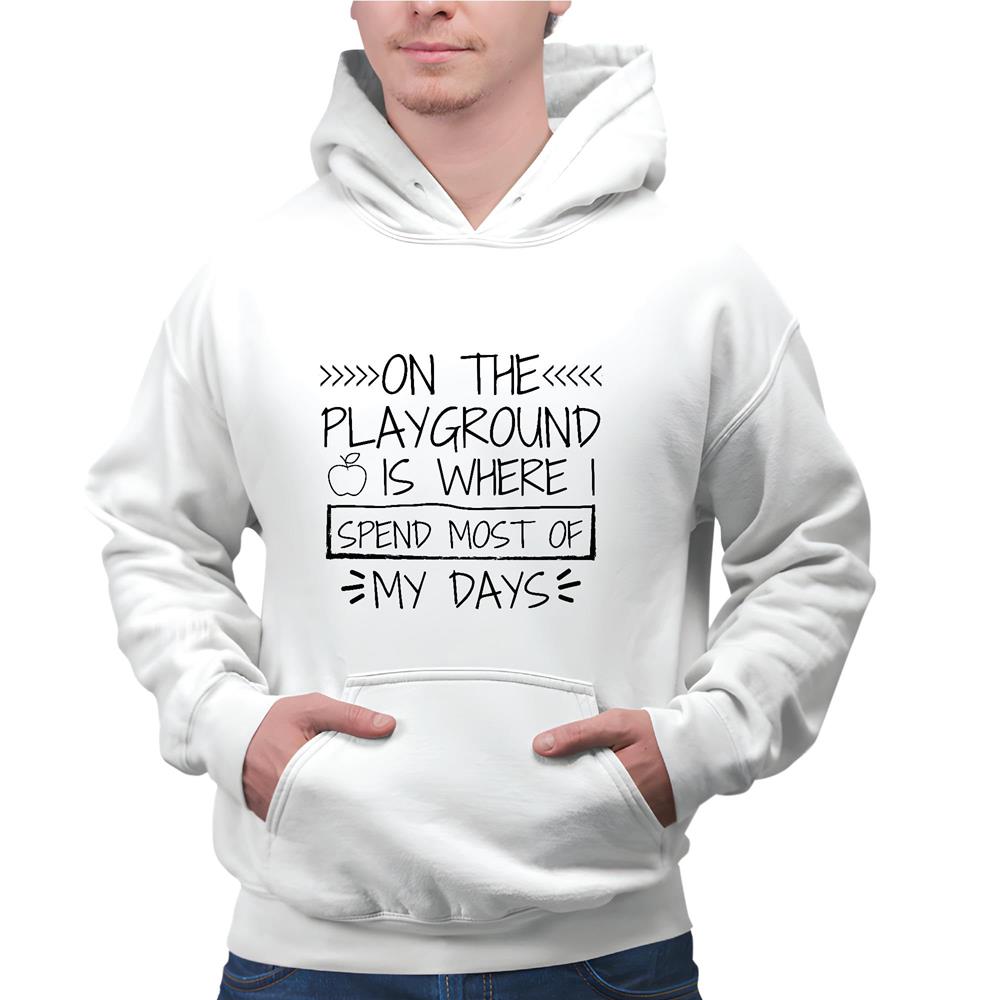 On the Playground is where I spend most of my days for Teacher Student Gray and Muticolor Unisex Hoodie