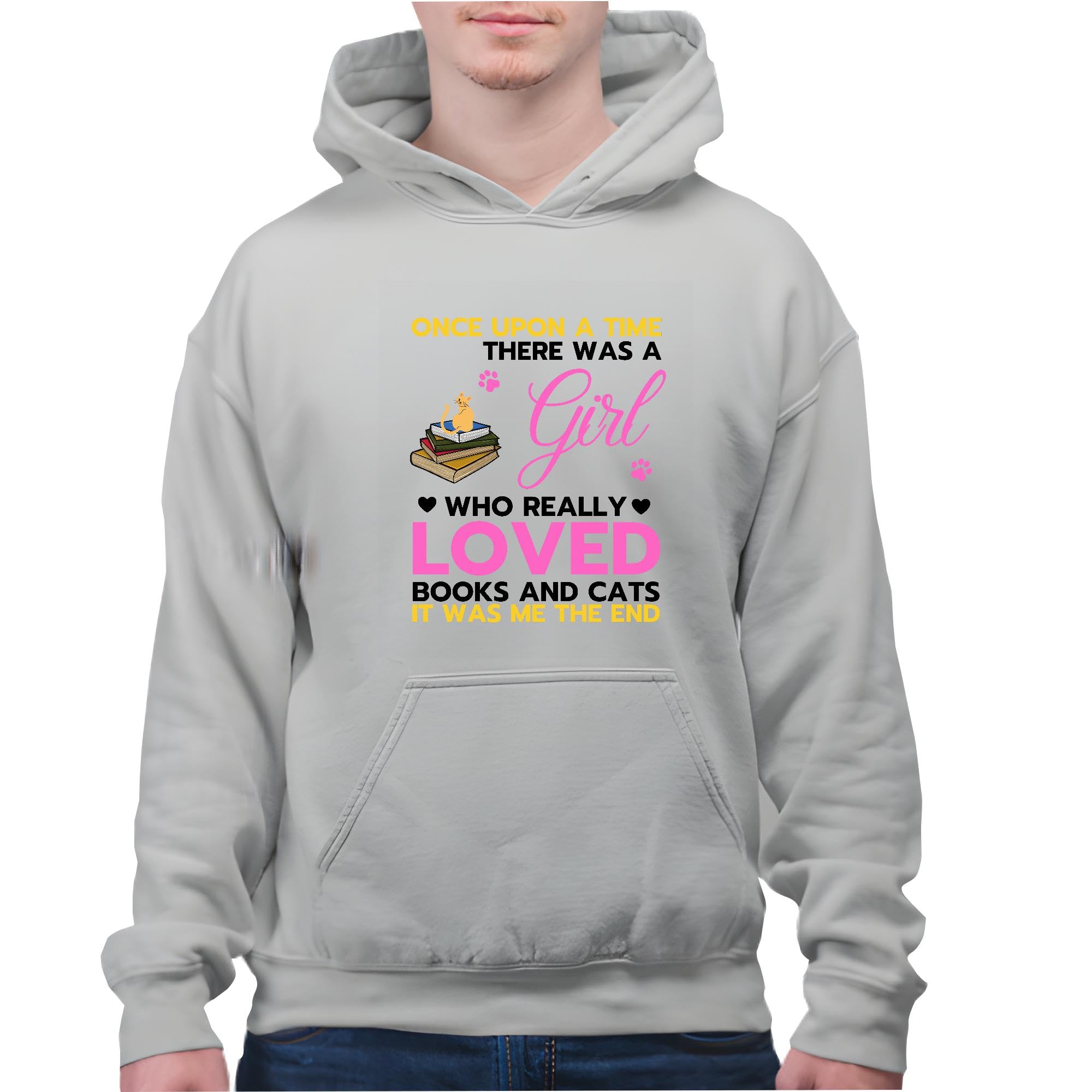 Once Upon Time Girl Loved Books Cats Humorous Bookworm Admirers Ladies Gray and Muticolor Unisex Hoodie
