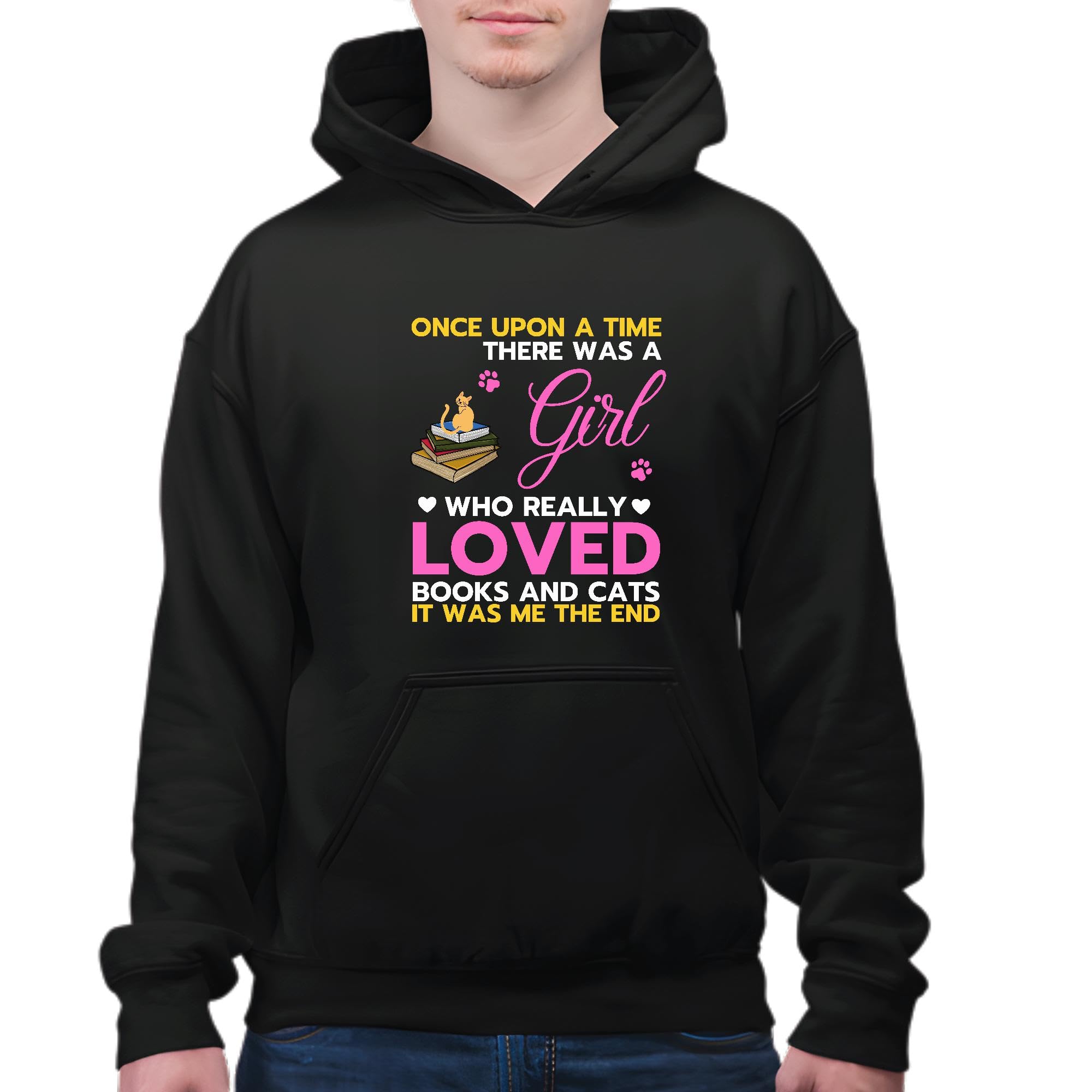 Once Upon Time Girl Loved Books Cats Humorous Bookworm Admirers Ladies Black and Muticolor Unisex Hoodie