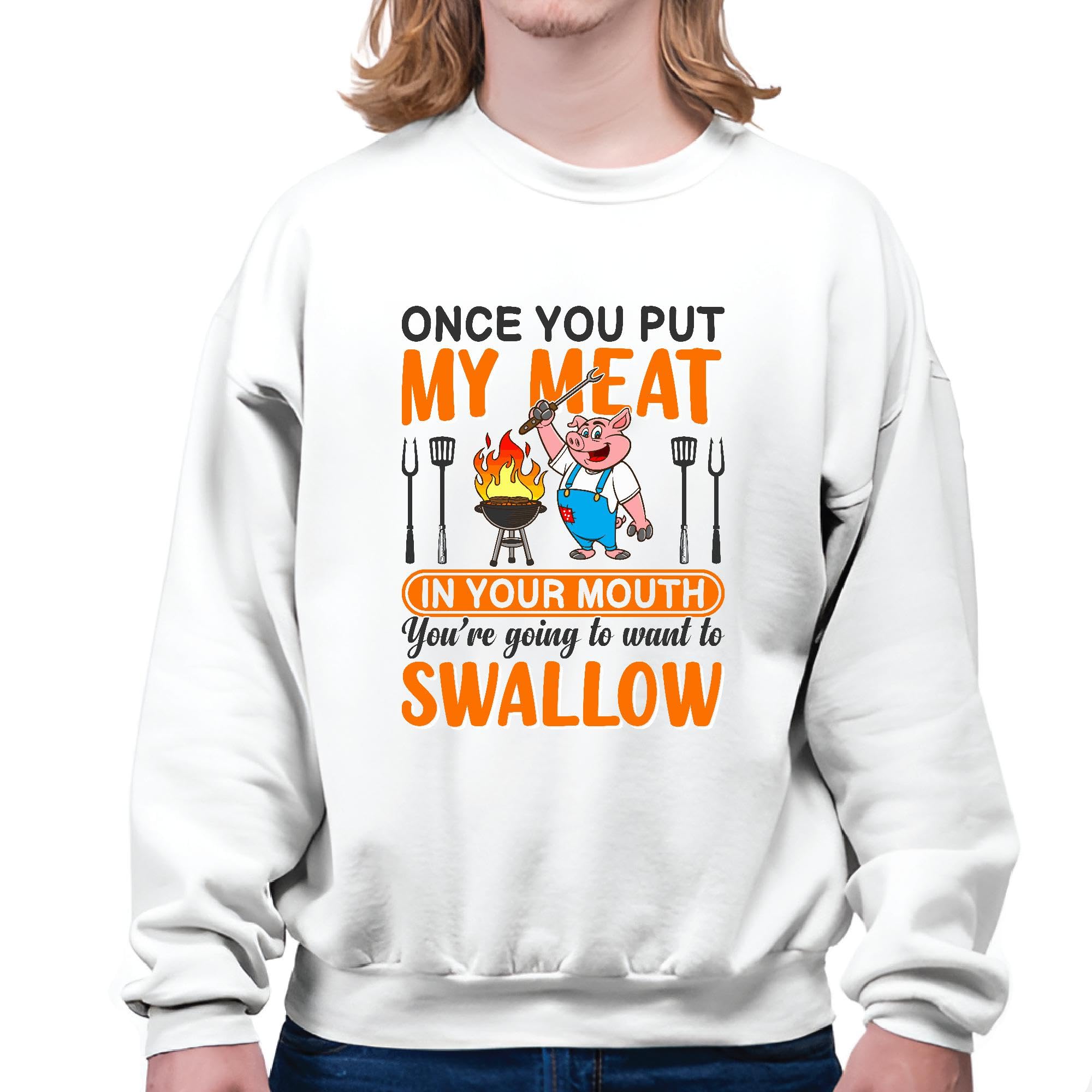 Once you put my meat funny for BBQ Grilling lover Grey White Muticolor Unisex Sweatshirt