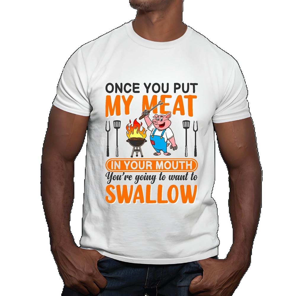 Once you put my meat funny for BBQ Grilling lover Men Women White Gray Multicolor T shirt