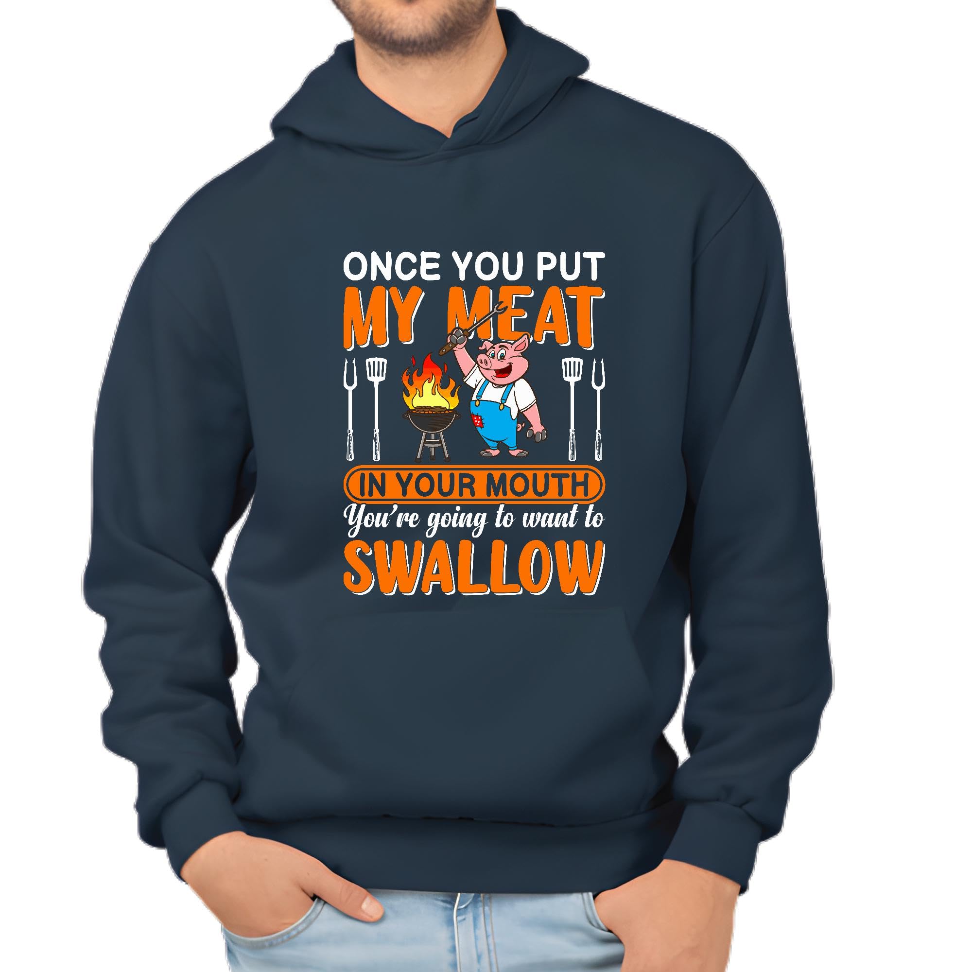 Once you put my meat funny for BBQ Grilling lover Navy and Muticolor Unisex Hoodie
