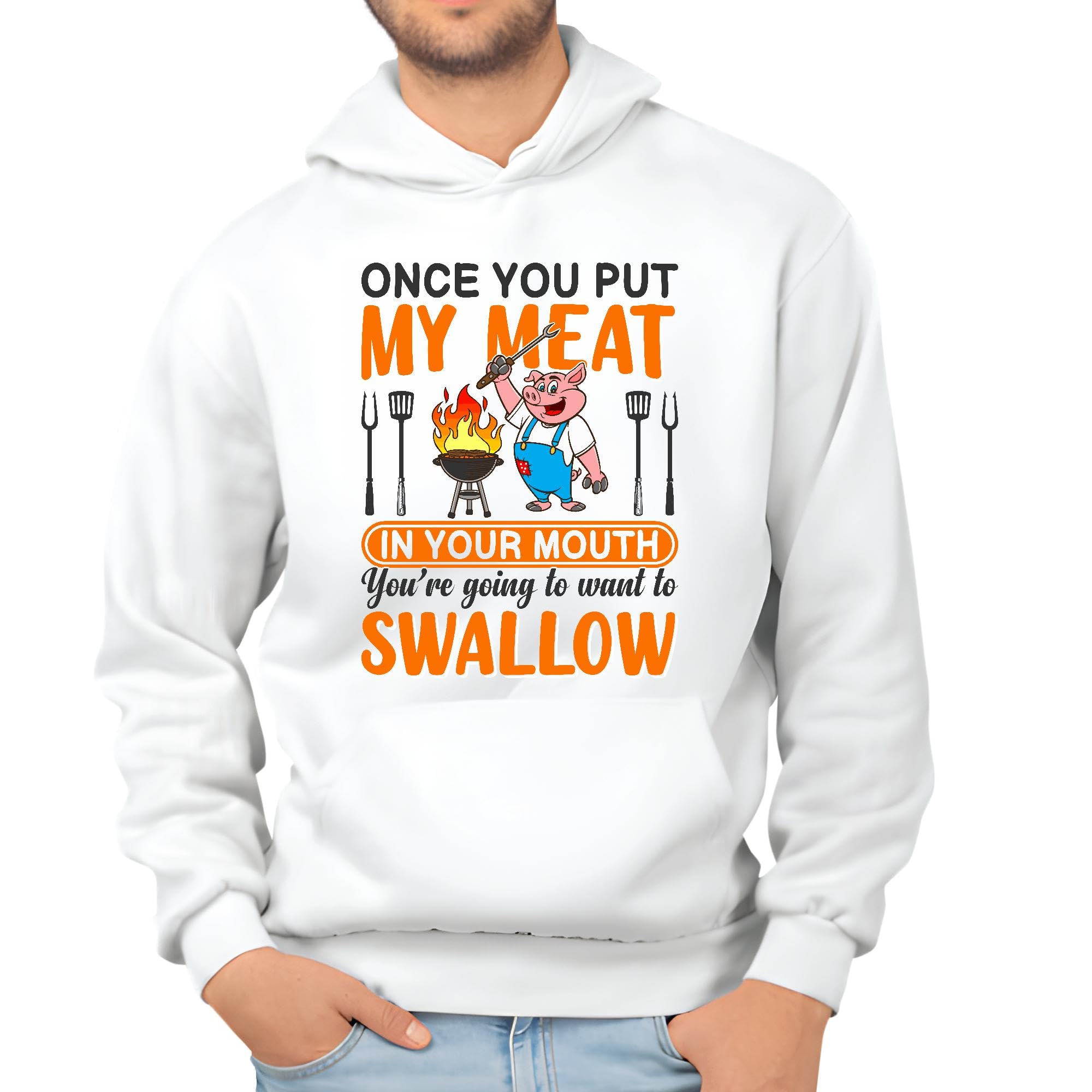 Once you put my meat funny for BBQ Grilling lover White and Muticolor Unisex Hoodie
