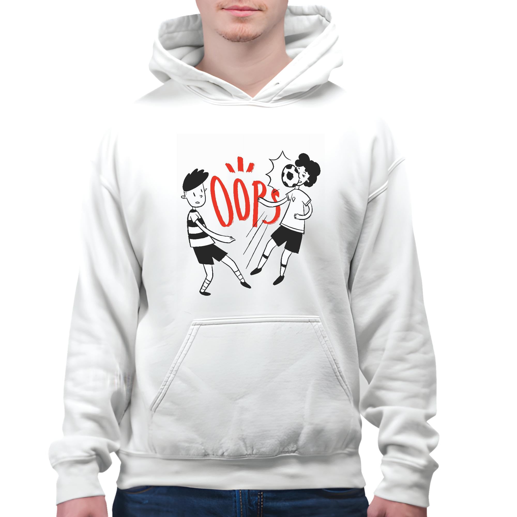 Oops Soccer Gift for Boys Funny Wordplay Design White and Muticolor Unisex Hoodie
