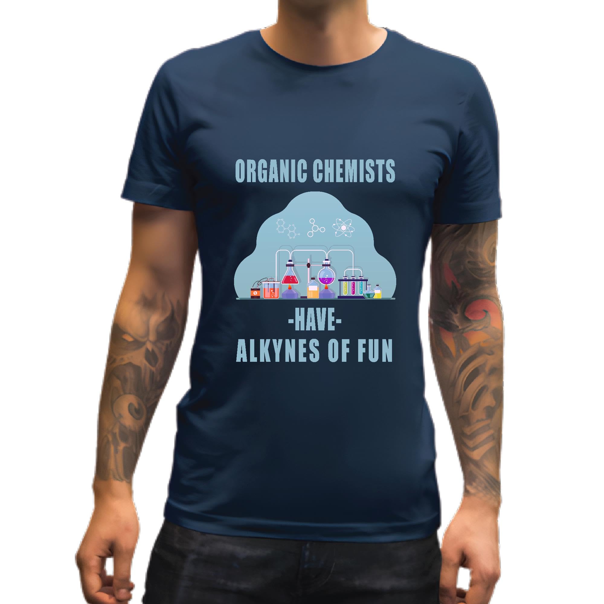 Organic Chemistry Alkynes Fun for Science Lovers Men Women Navy Multicolor T shirt