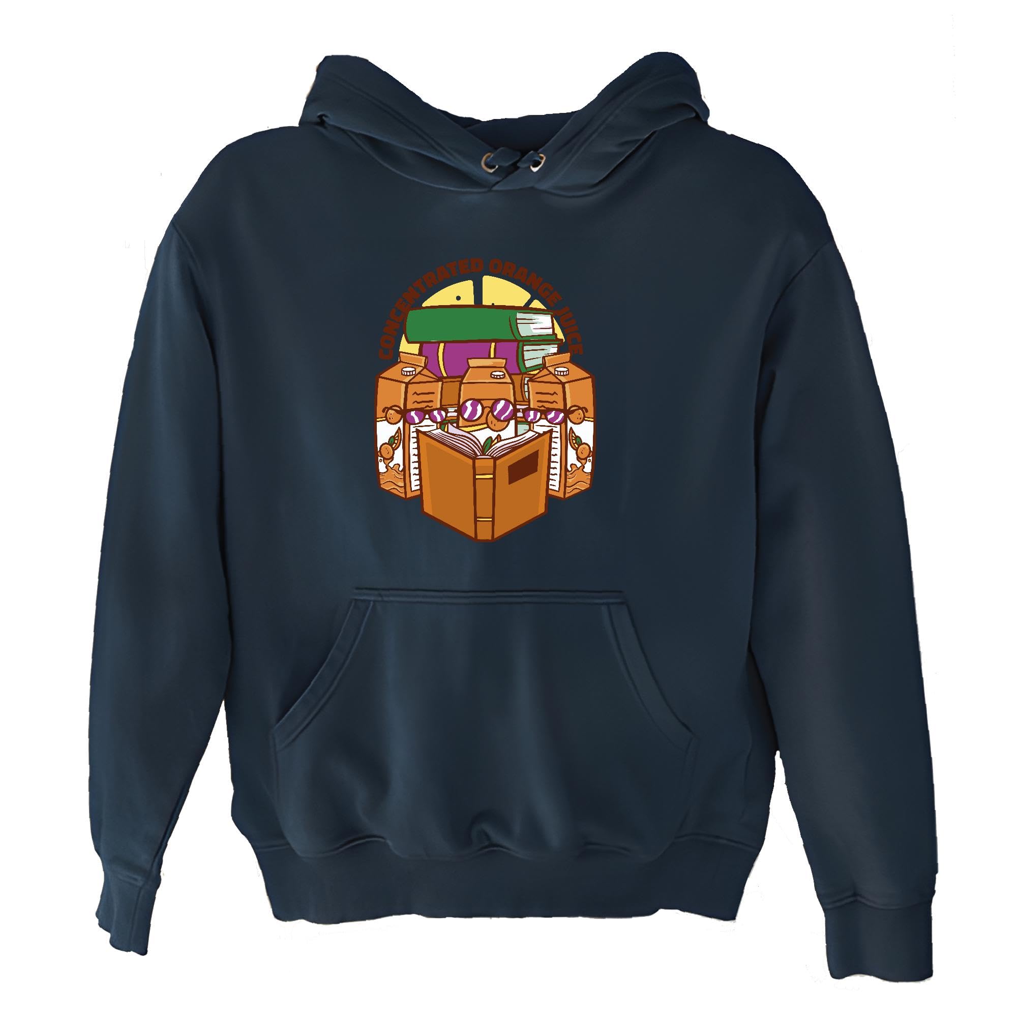 Organic Gift Idea Quote Concentrated Orange Juice Reader Book Unisex for All Ages Navy and Muticolor Unisex Hoodie