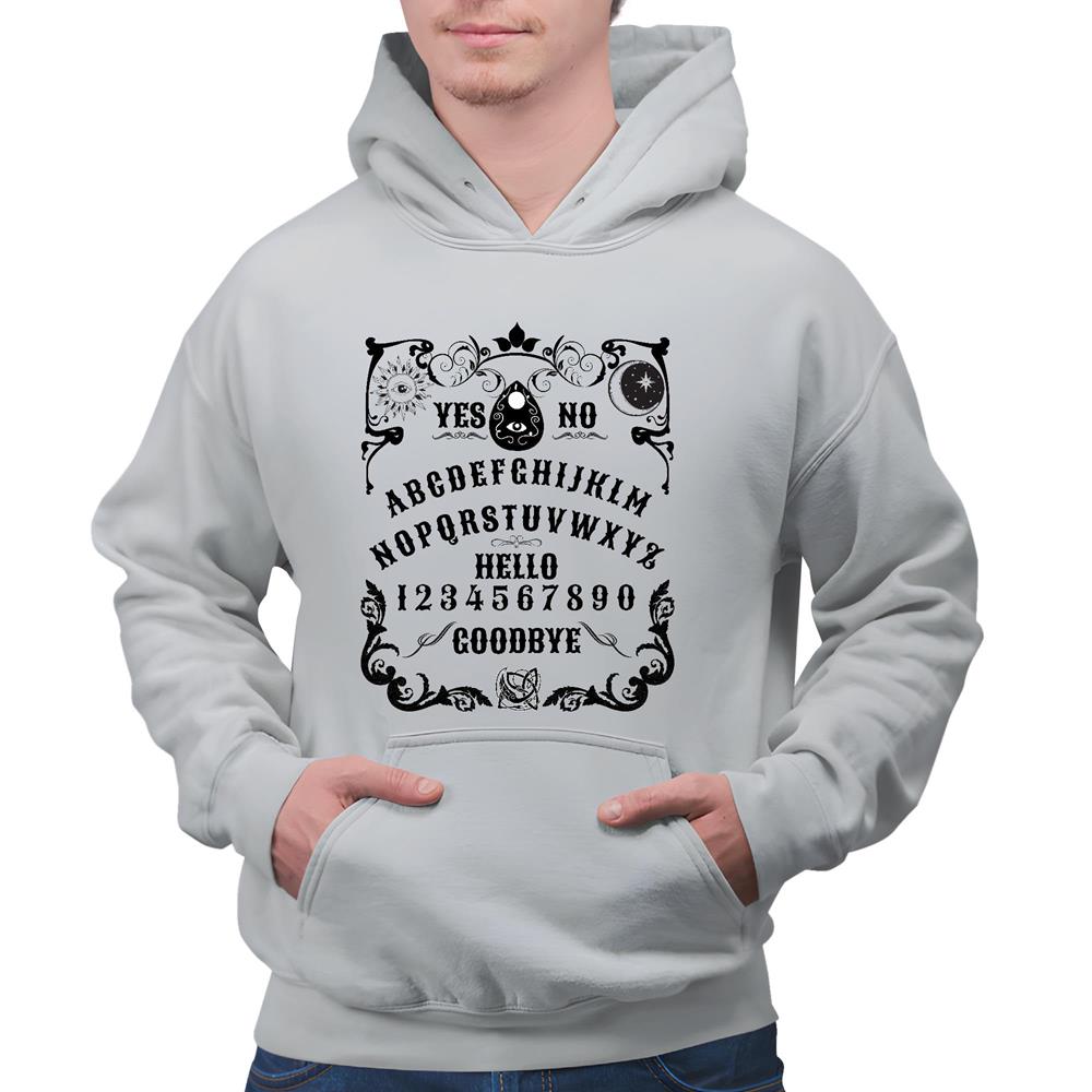 Ouija Board Seance Spirit Board Design Funny Novelty Gift for Occult Fans Gray and Muticolor Unisex Hoodie