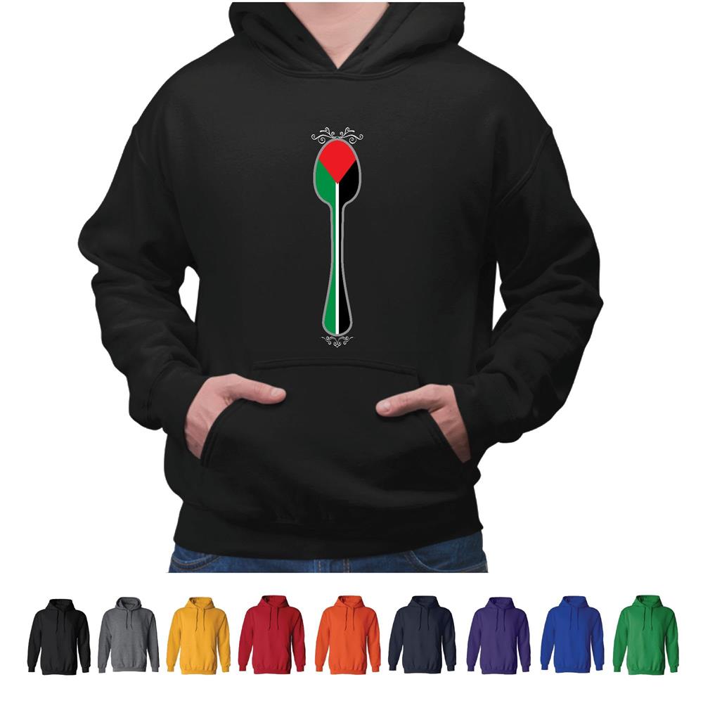 Palestinian flag arabic Calligraphy Palestine Spoon Black and Muticolor Unisex Hoodie