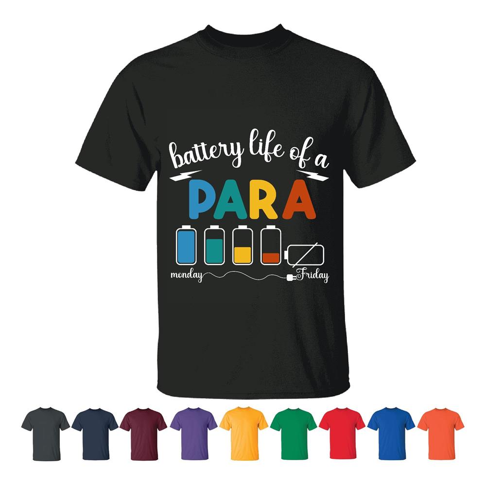 Paralife Battery Life Gift for Paraprofessionals Teachers Day Present Men Women Black T shirt