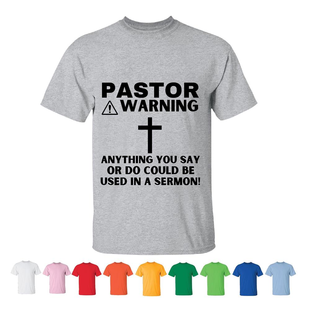 Pastor Warning Funny Humor for Believers and Congregations Men Women White Gray T shirt
