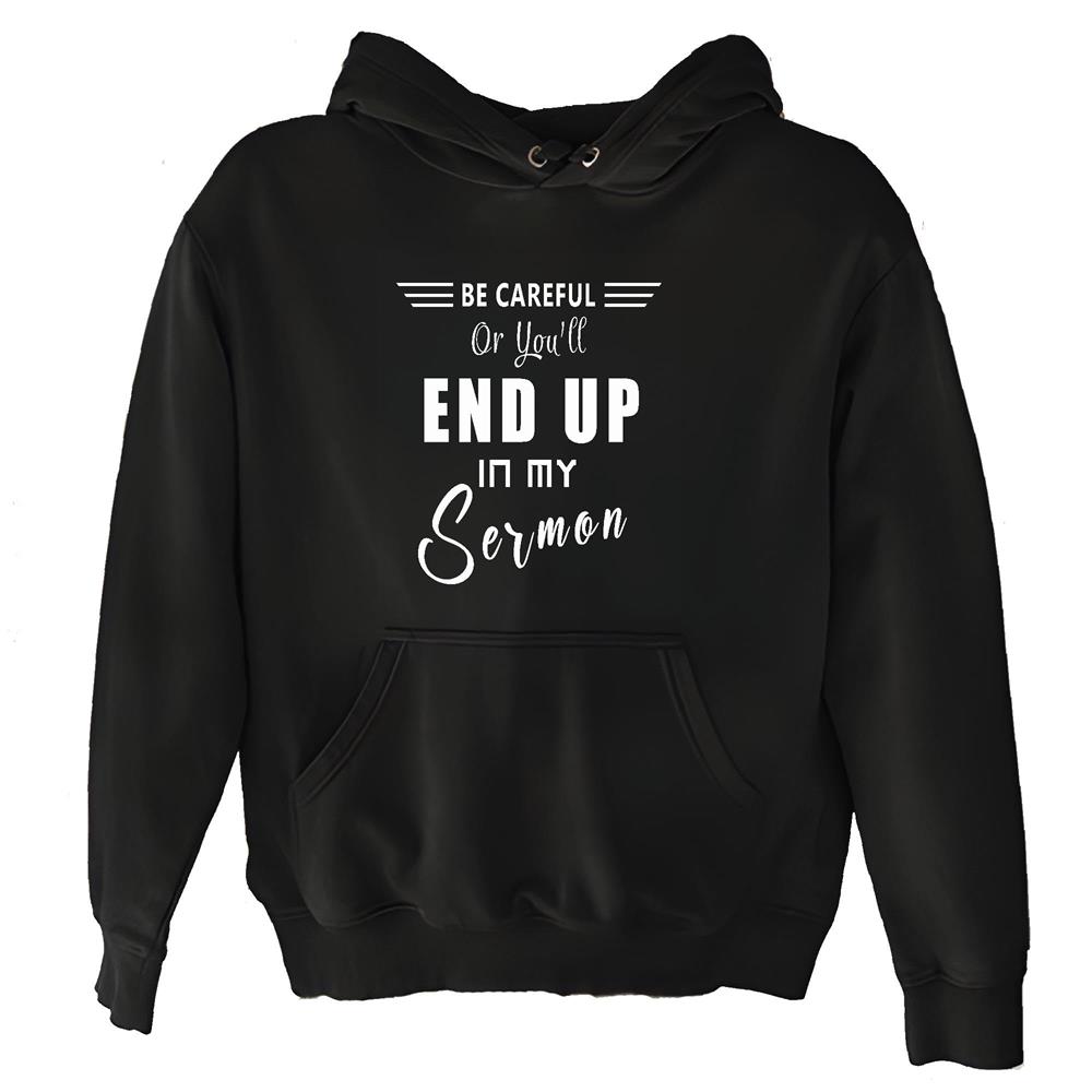 Pastor warning I might put you in a sermon from Christian Jesus Black and Muticolor Unisex Hoodie