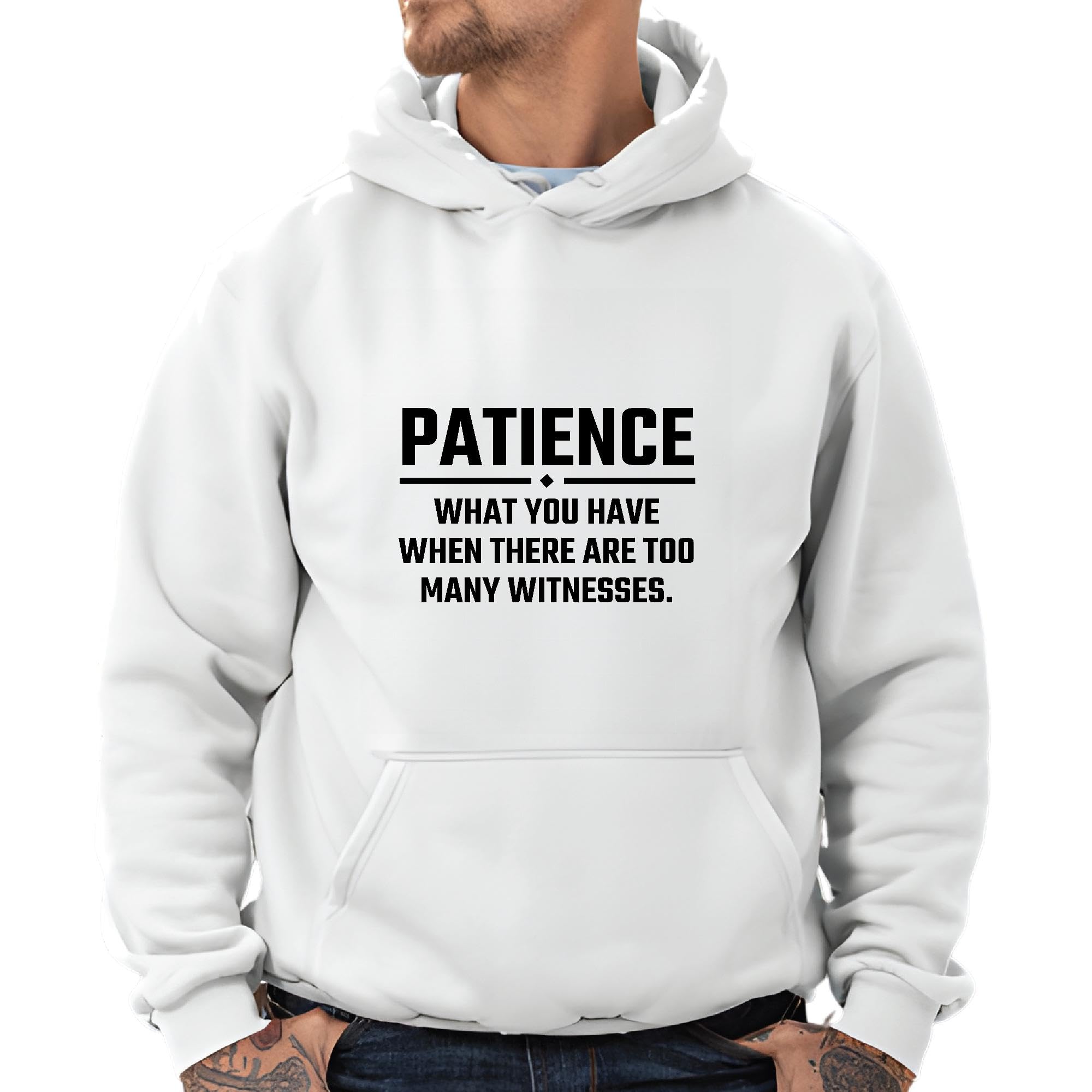 Patience is a Must Have Gift for Funny Men and Women with Too Many Witnesses Gray and Muticolor Unisex Hoodie