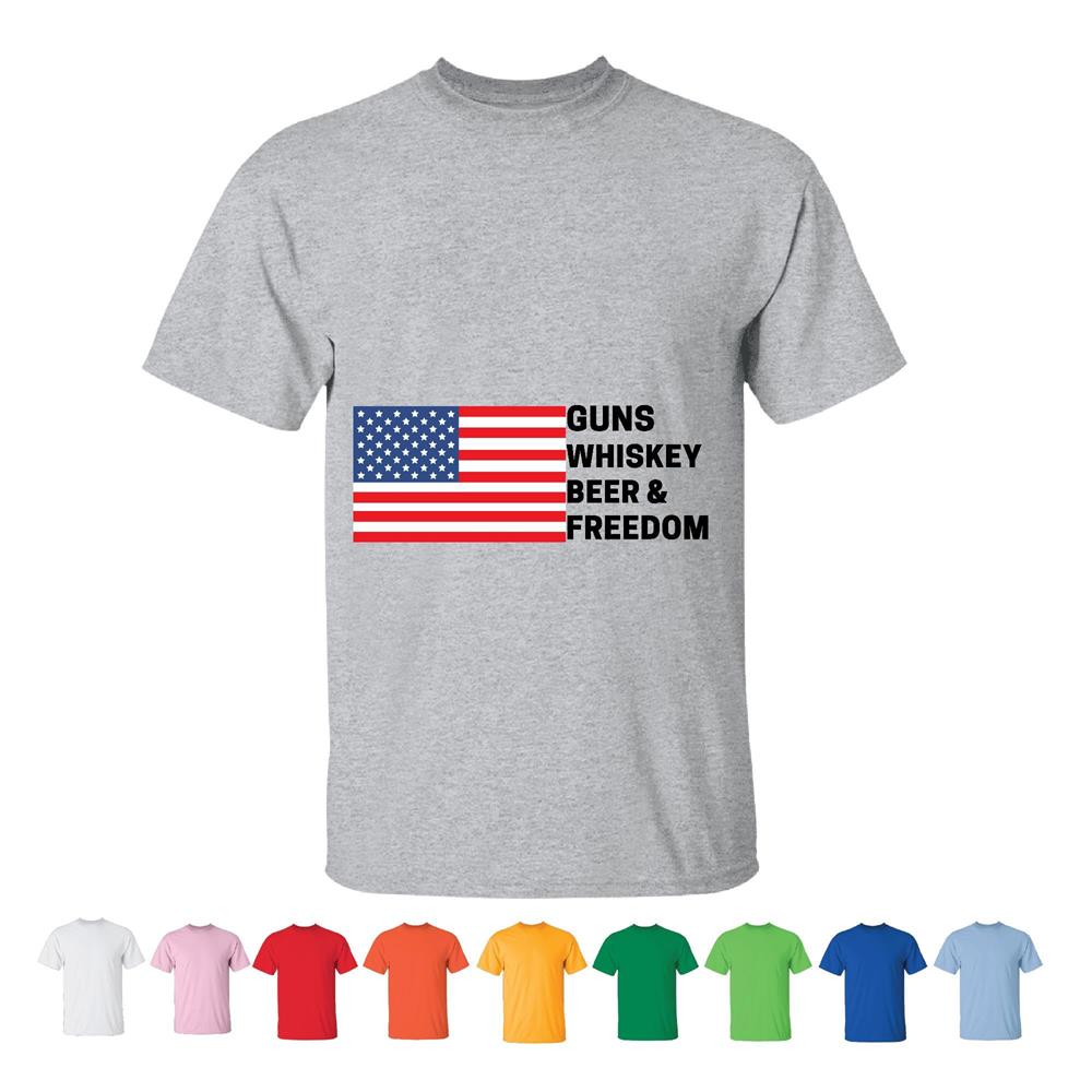 Patriotic for Men Guns Whiskey Beer and Freedom US Flag Men Women White Gray T shirt