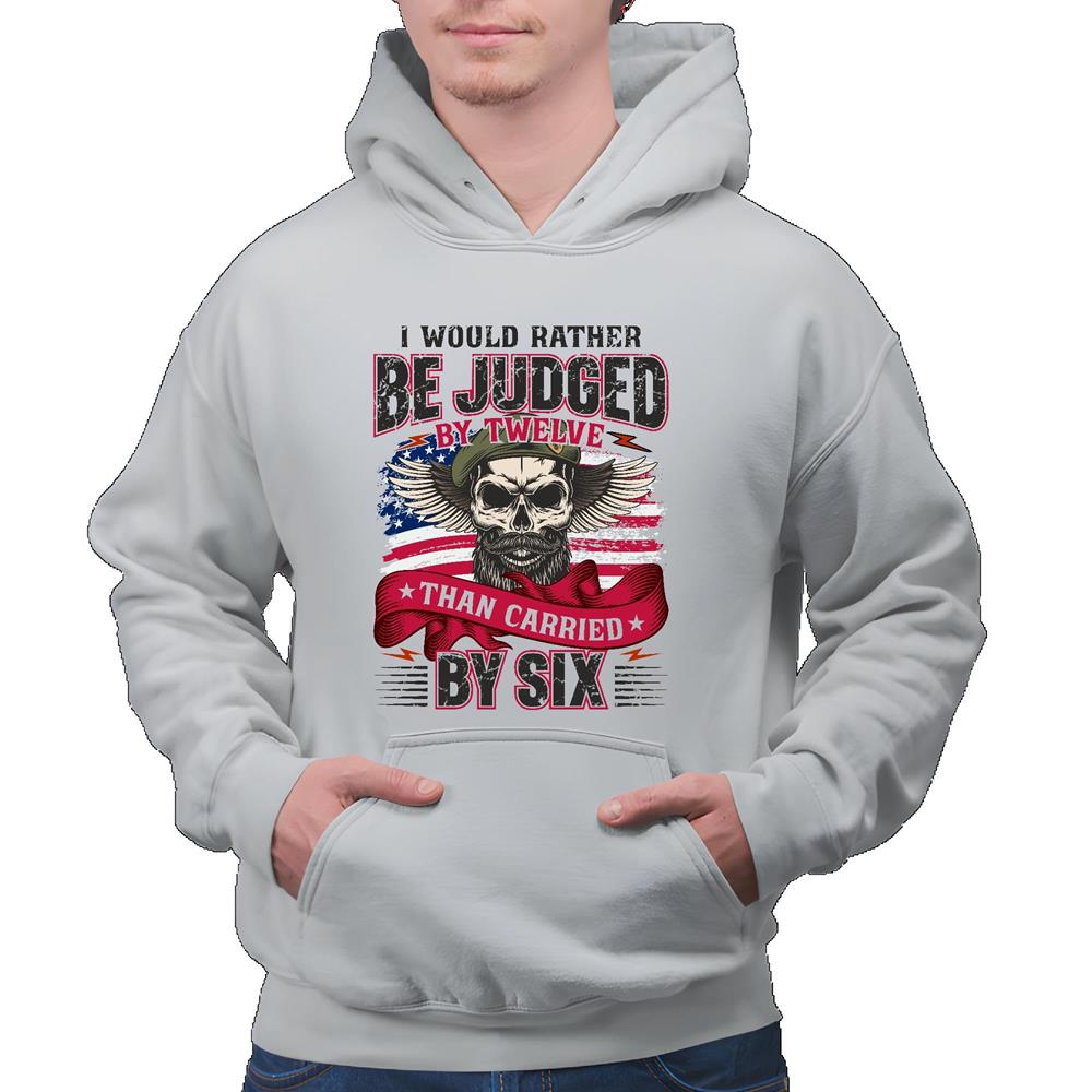 Patriotic for Proud Americans I Would Rather Be Judged By Twelve Than Carried By Six Gray and Muticolor Unisex Hoodie
