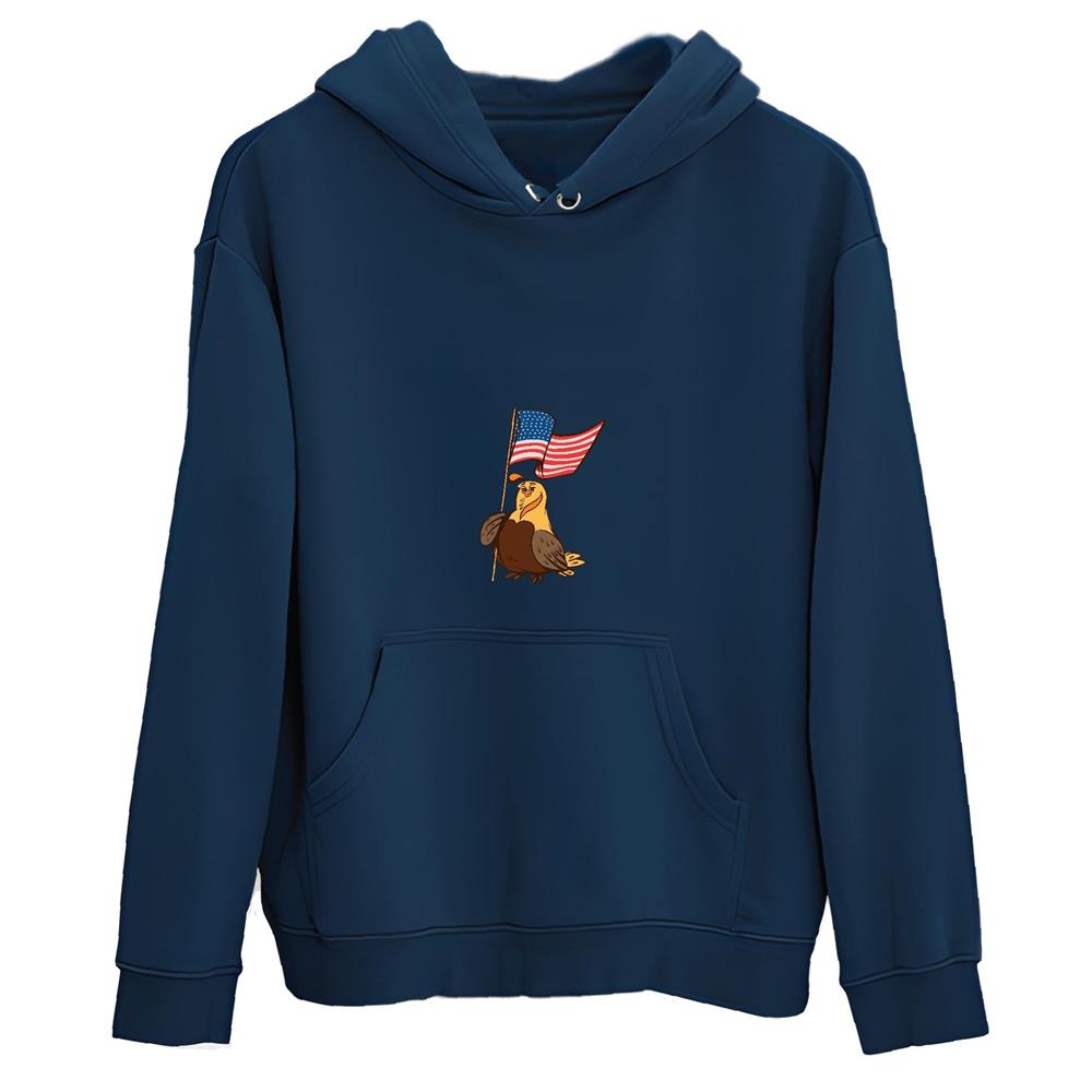 Patriotic Gift for US Flag Lovers Quail Bird Holding National Flag Navy and Muticolor Unisex Hoodie
