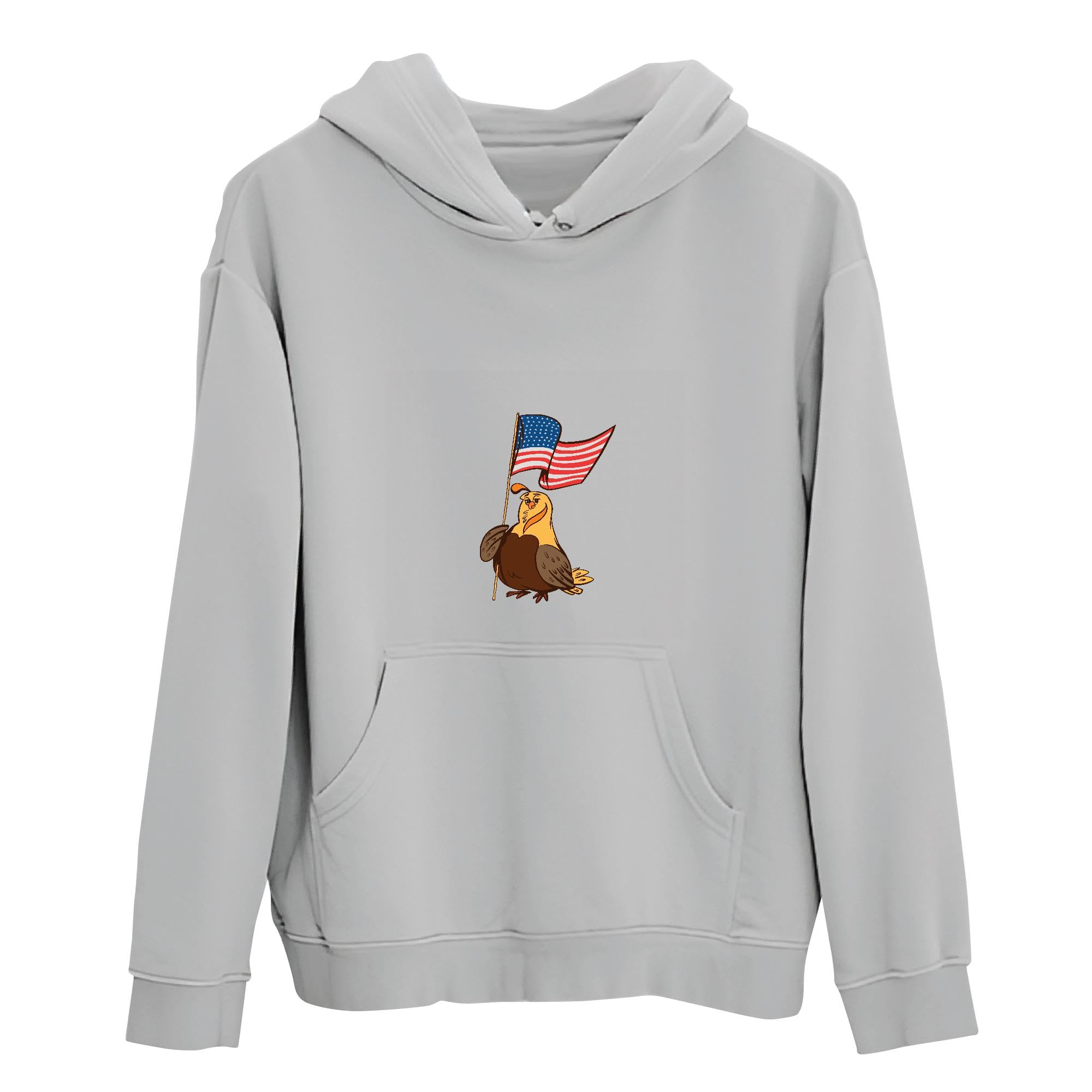 Patriotic Gift for US Flag Lovers Quail Bird Holding National Flag Gray and Muticolor Unisex Hoodie