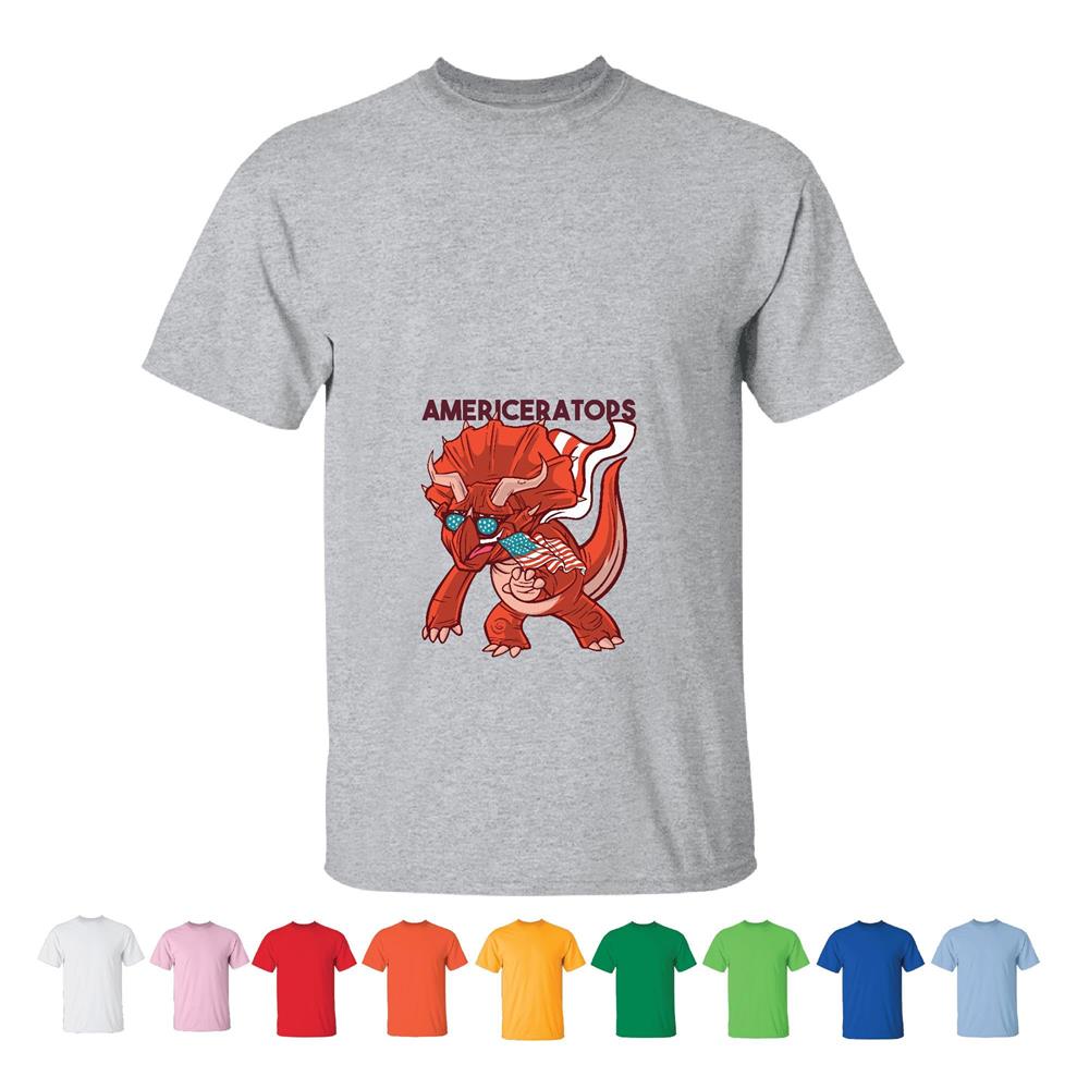 Patriotic Gift for USA Lovers American Triceratops Men Women White Gray T shirt