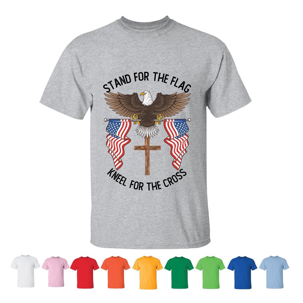 Patriotic God-Loving Veteran Gift for Stand for the Flag Kneel for the Cross Men Women White Gray T shirt