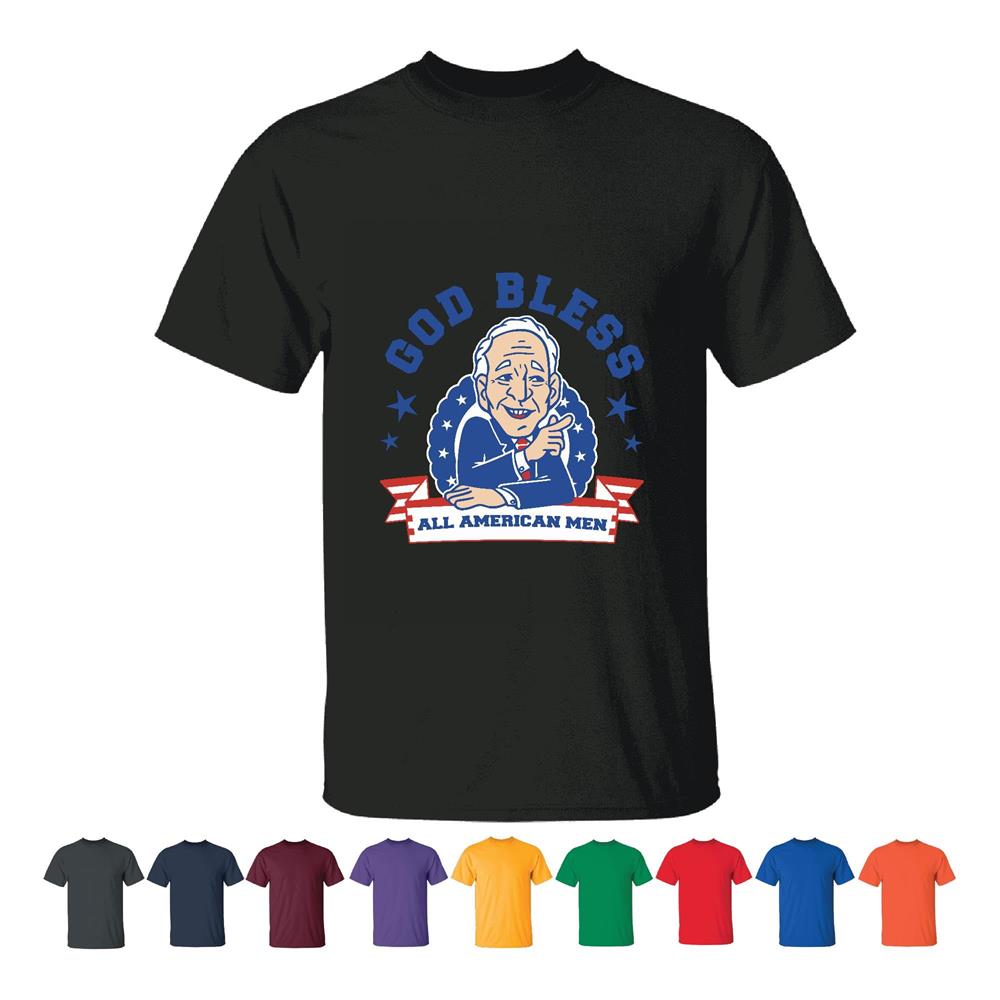 Patriotic T-Shirt for Men Featuring President of USA and ‘God Bless All American Men’ Sentiment Men Women Black T shirt