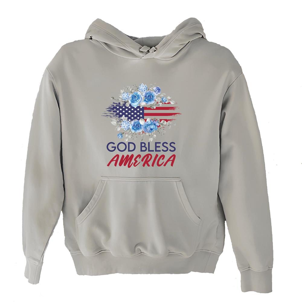 Patriotic Gift for USA Lovers God Bless America Gray and Muticolor Unisex Hoodie