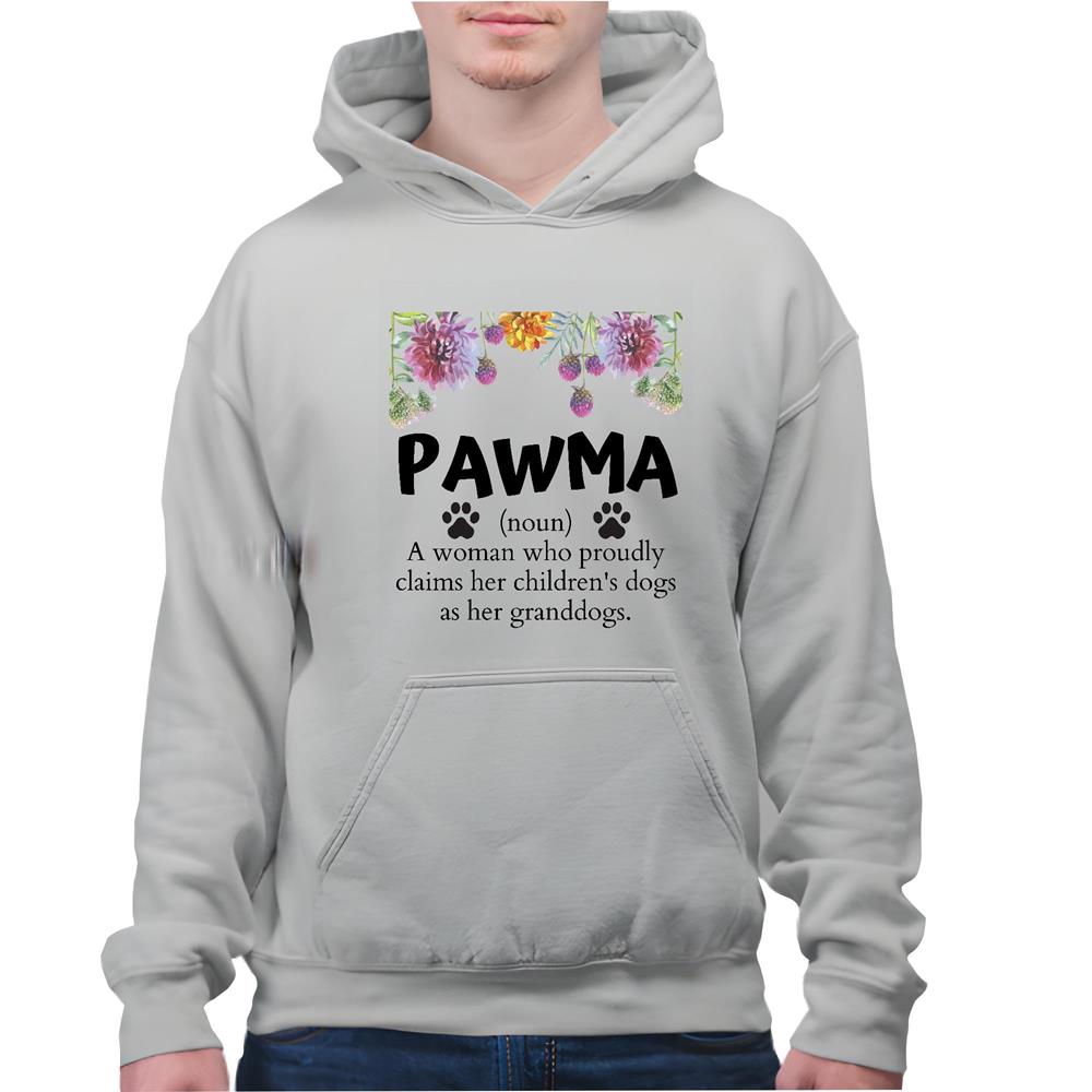 Pawma Grandma Dog Owner GiftFloral Dog Humor Love Cute Puppies Pet for Grandmother Gray and Muticolor Unisex Hoodie