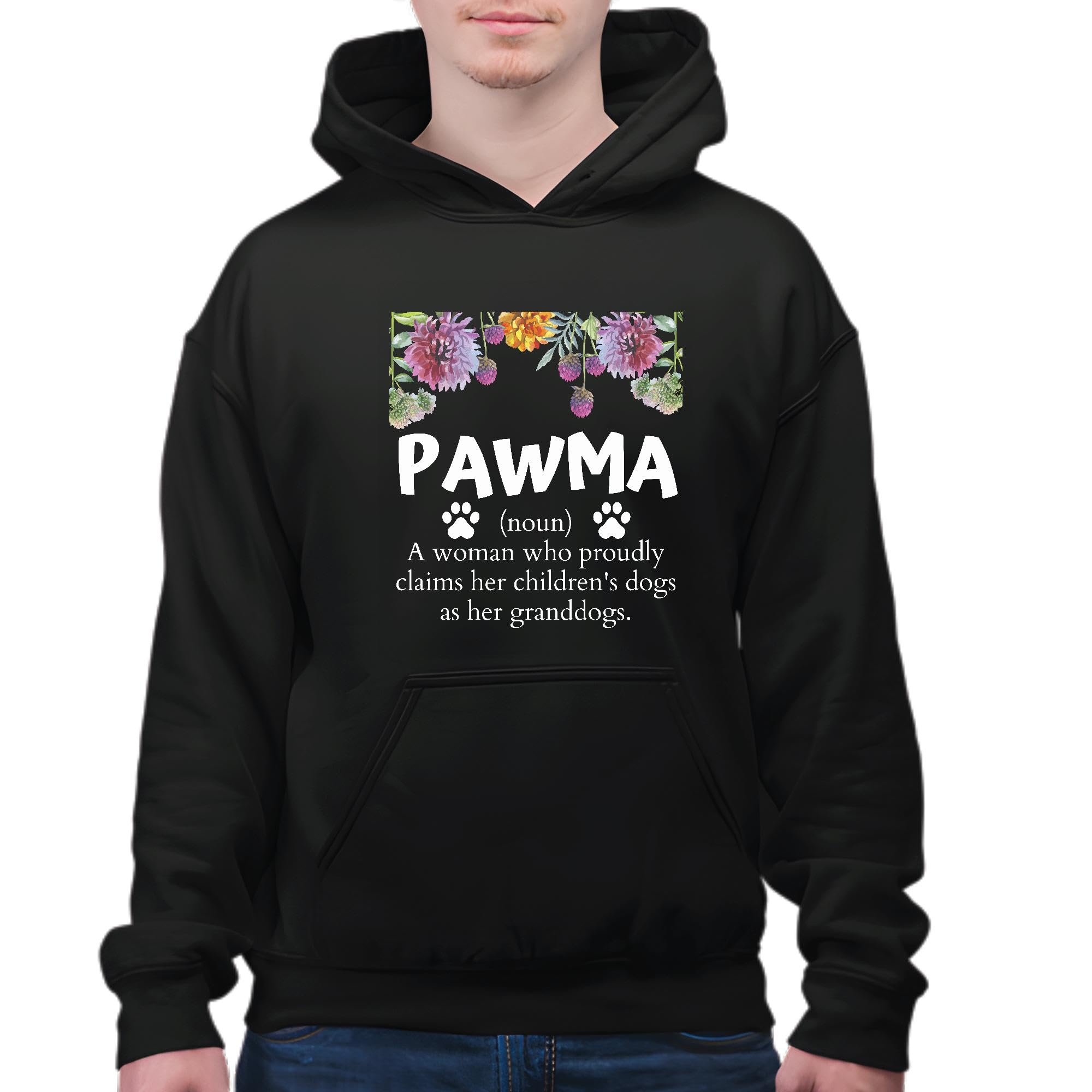 Pawma Grandma Dog Owner GiftFloral Dog Humor Love Cute Puppies Pet for Grandmother Black and Muticolor Unisex Hoodie
